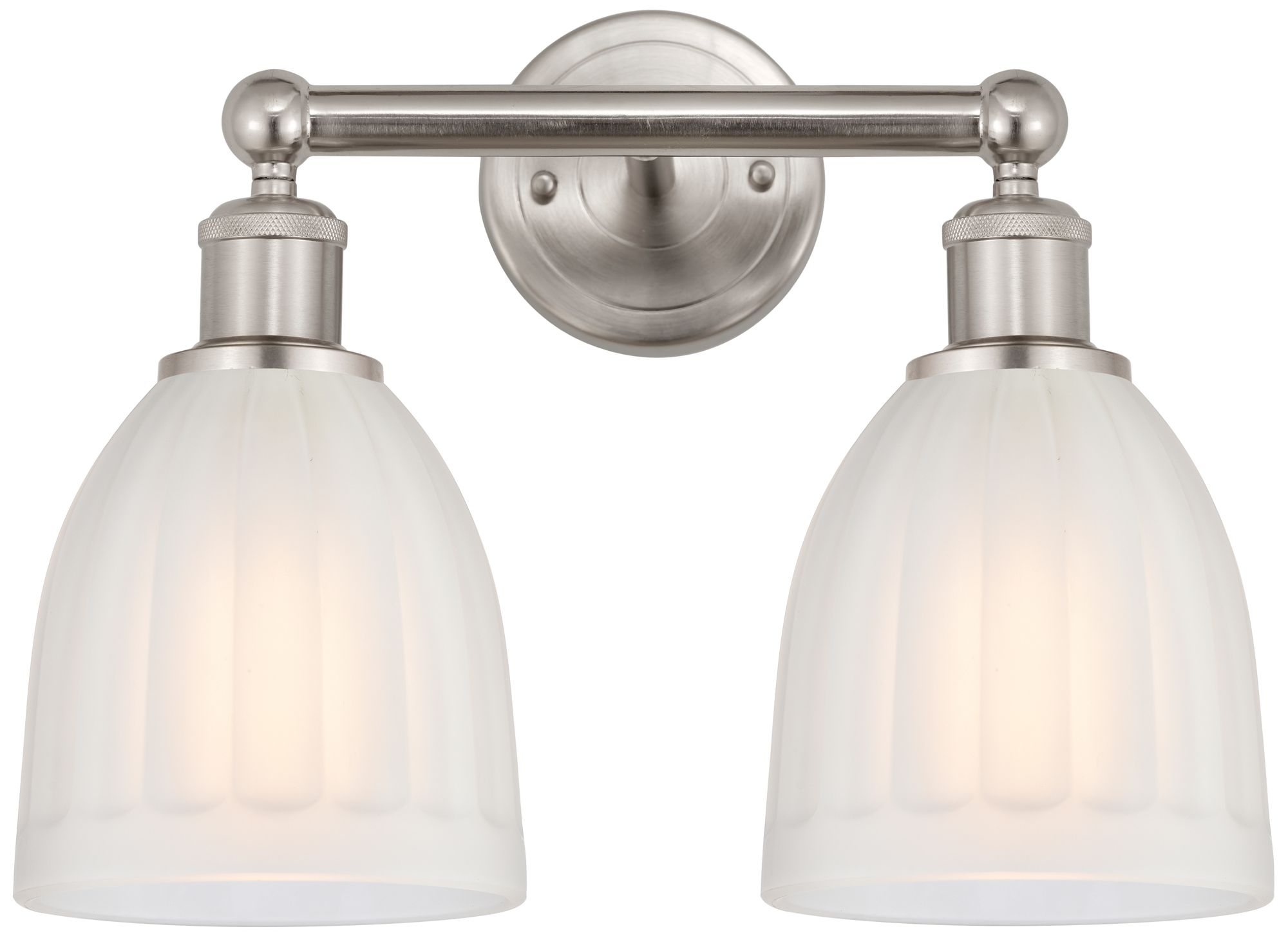 Brookfield 15" 2-Light Brushed Satin Nickel Bath Light w/ White Shade