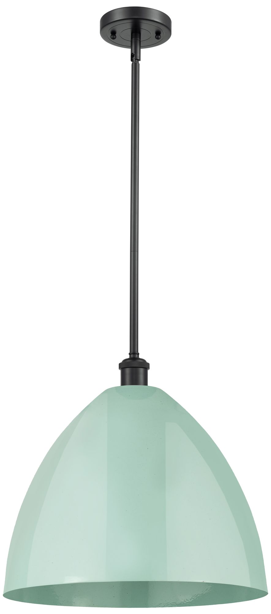 Plymouth Dome 16" Wide Matte Black Stem Hung Pendant w/ Seafoam Shade
