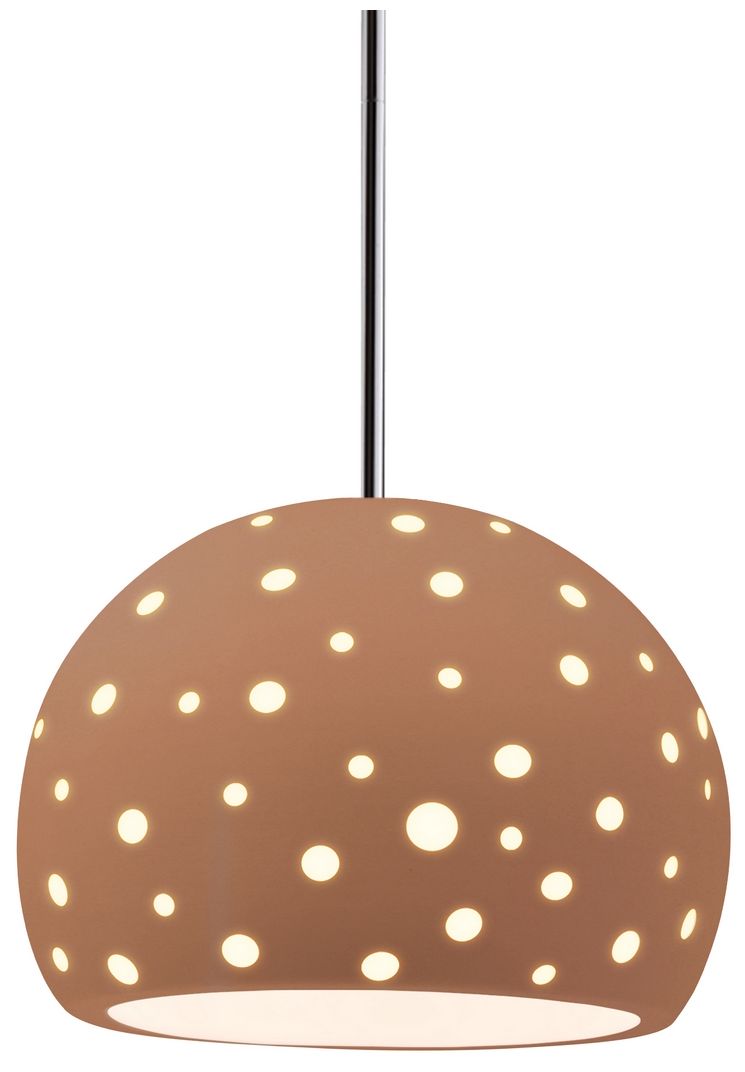 Perforated Globe 10"W Adobe, Polished Chrome LED Pendant - White Cord