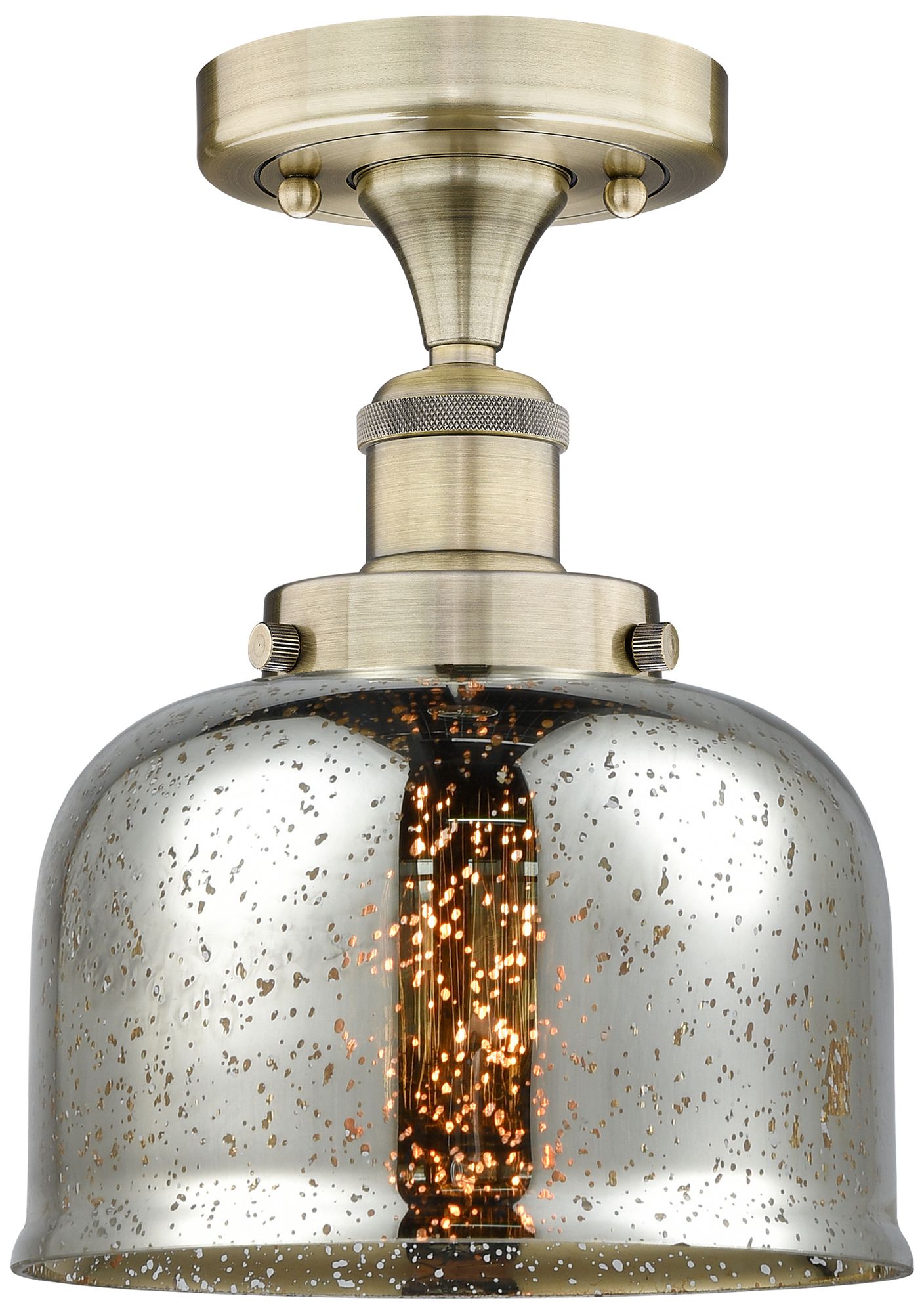 Bell 7.75"W Antique Brass Semi.Flush Mount w/ Mercury Glass Shade