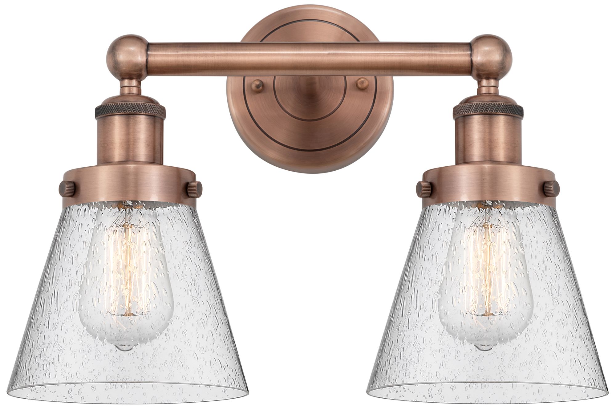 Edison Small Cone 15.5"W 2 Light Antique Copper Bath Light With Seedy