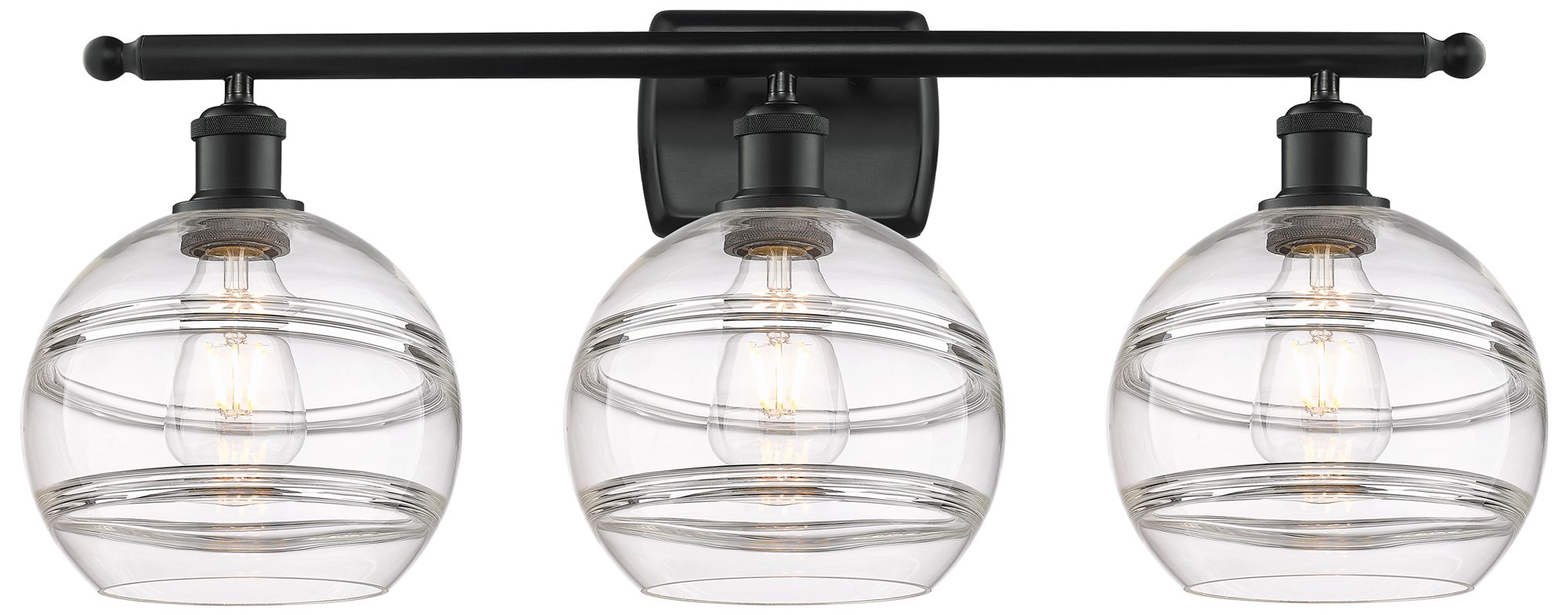 Ballston Rochester 28"W 3 Light Matte Black Bath Light w/ 8" Clea