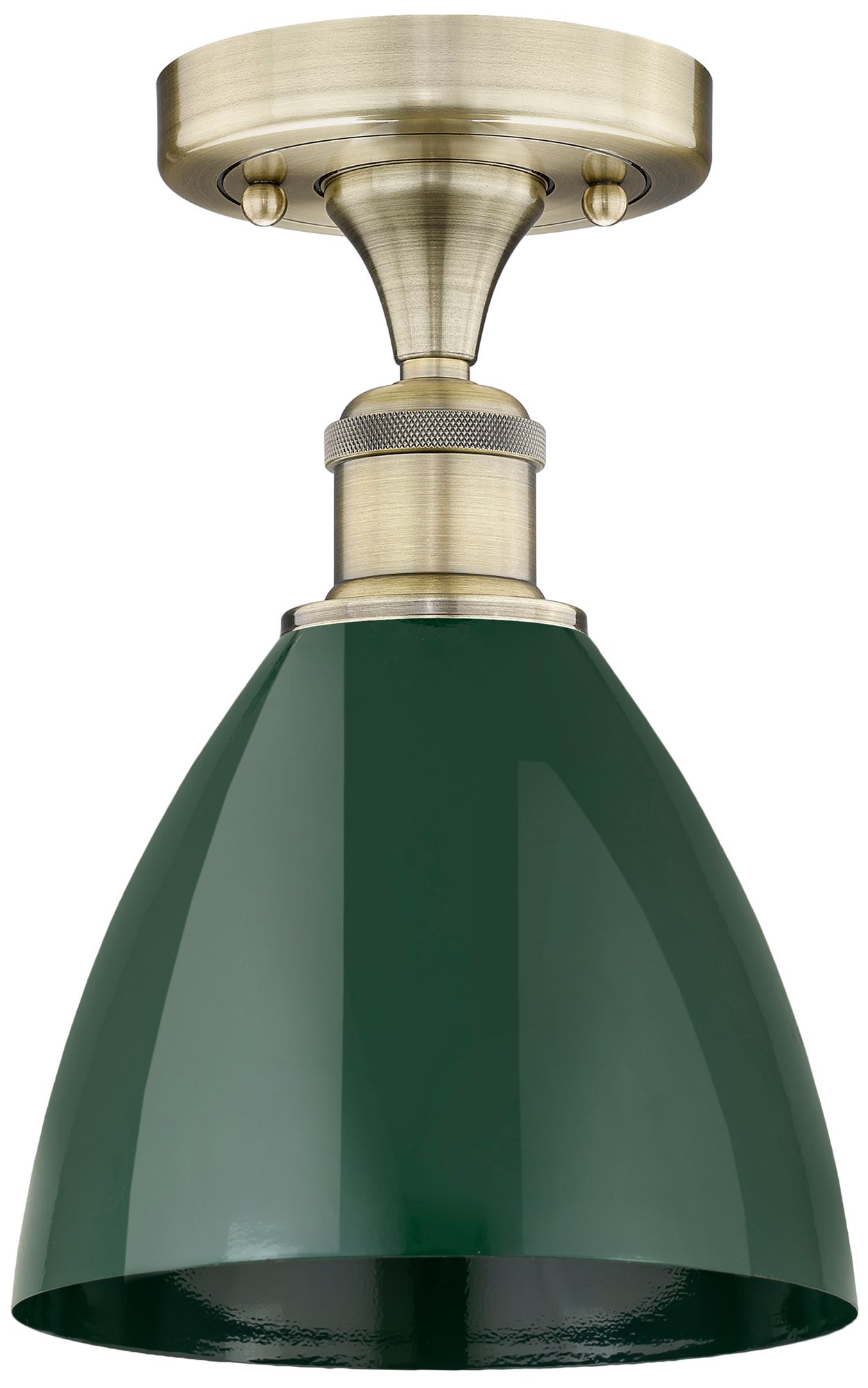 Plymouth Dome 7.5" Wide Antique Brass Semi.Flush Mount With Green Shad
