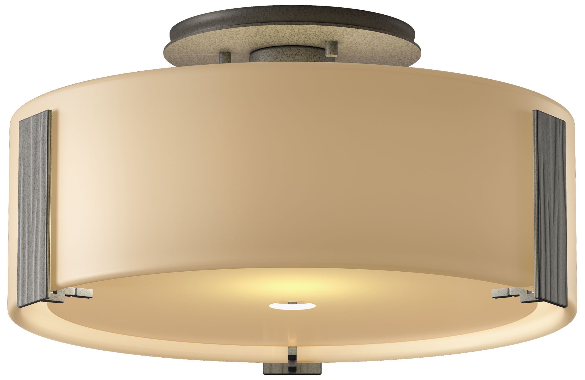 Impressions 11.8" Wide Natural Iron Semi-Flush With Opal Glass Shade