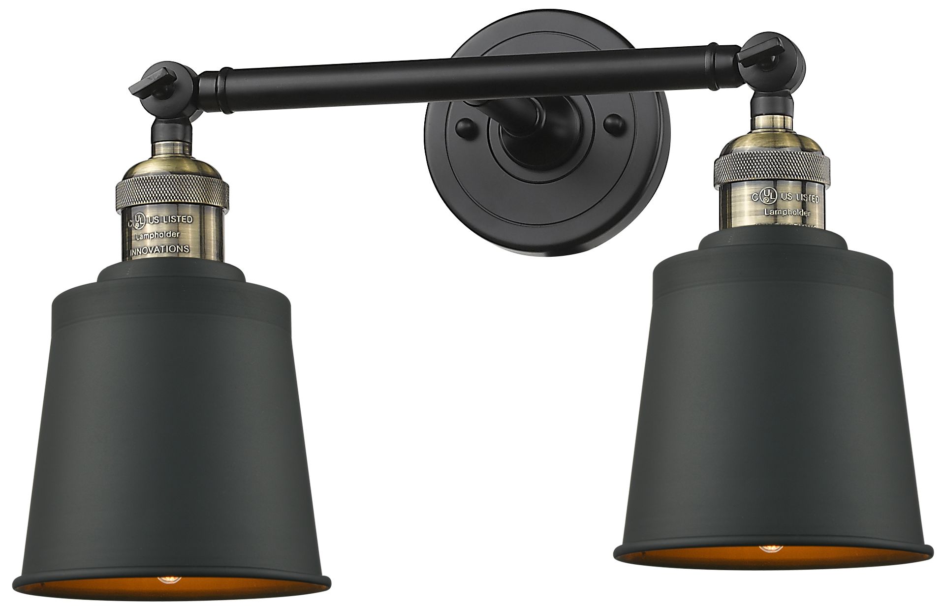 Addison 16" 2-Light Black Antique Brass Bath Light w/ Antique Brass Sh