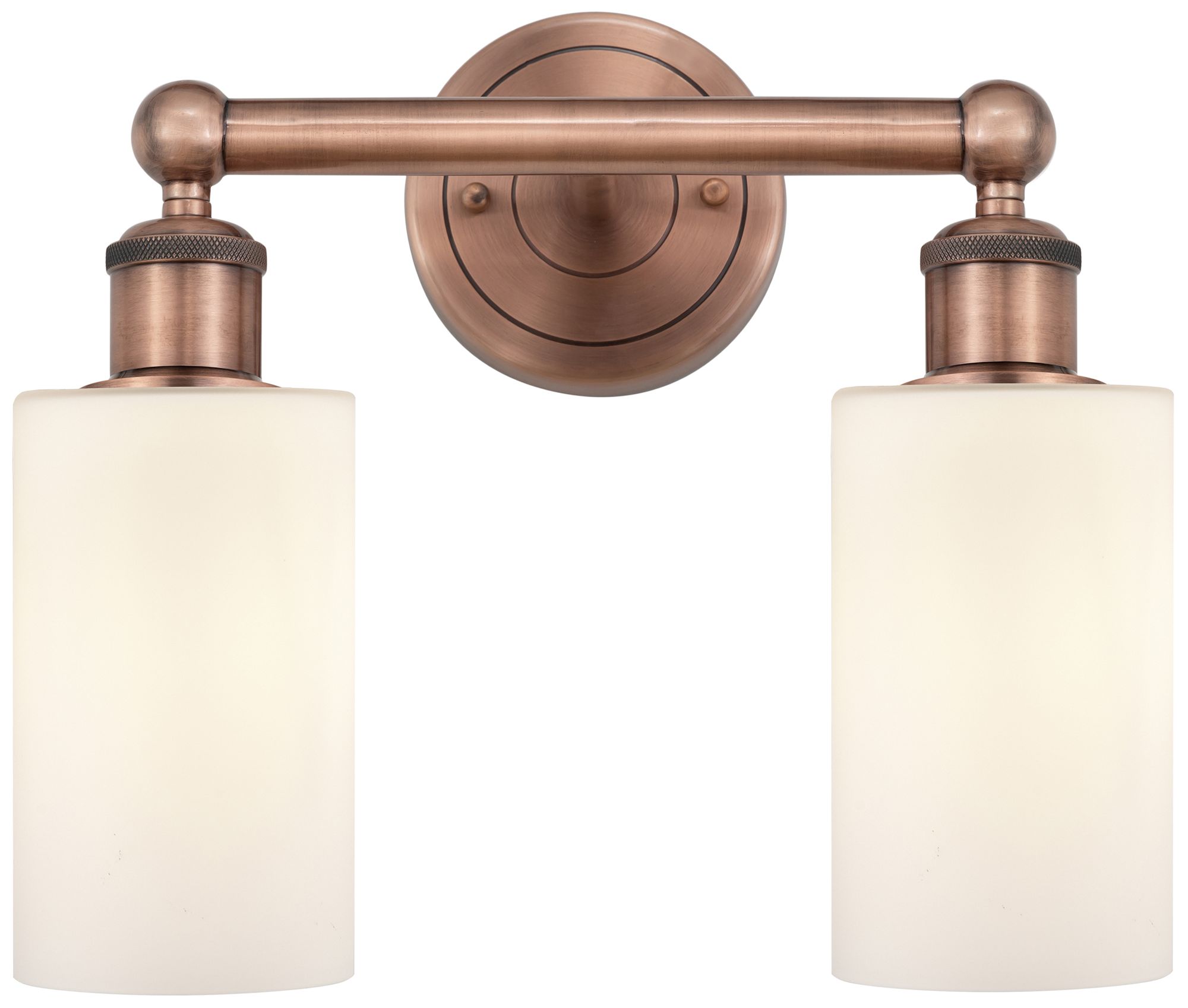 Clymer 12.88"W 2 Light Antique Copper Bath Vanity Light With White Sha