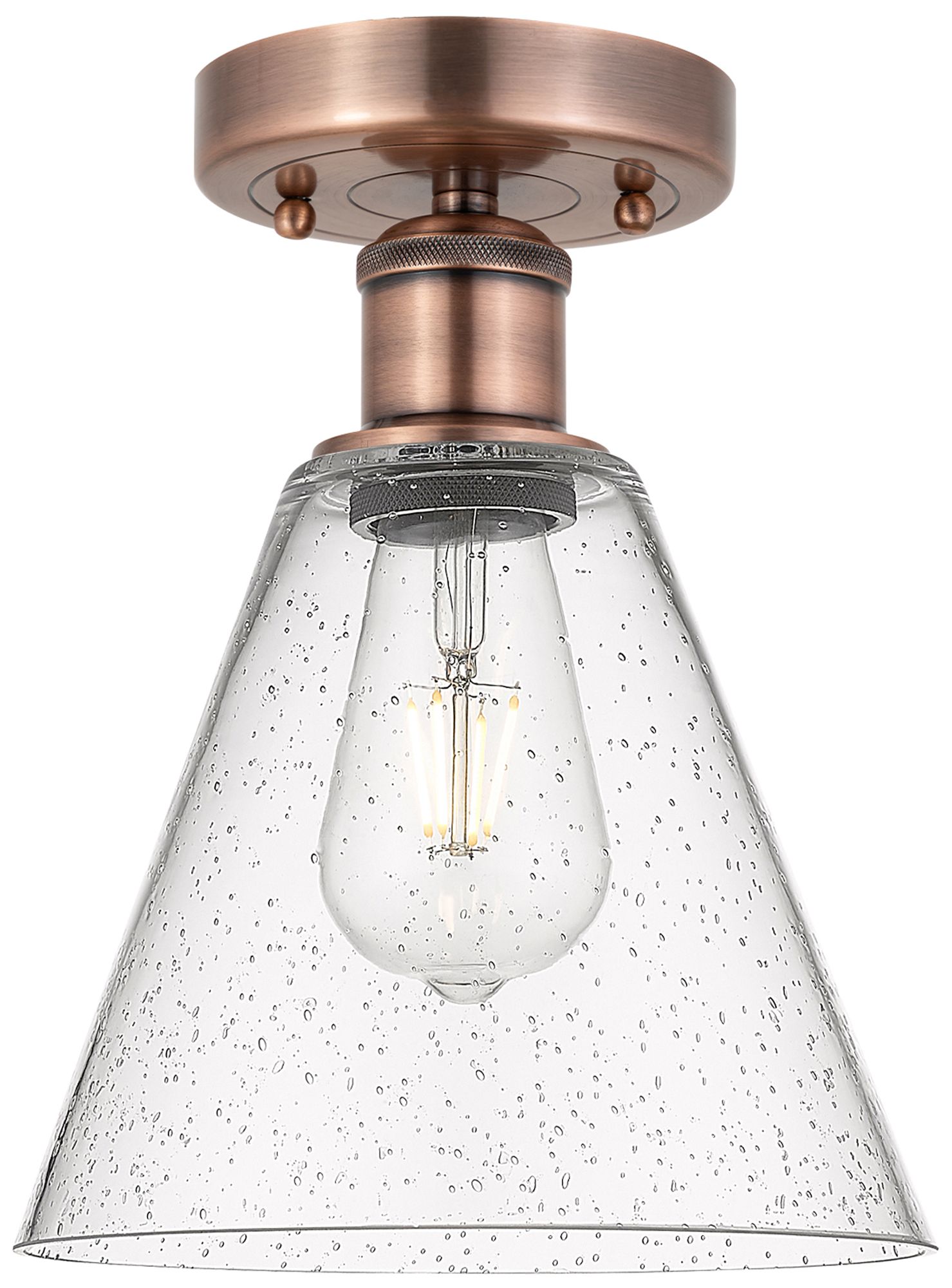 Berkshire 8" Wide Antique Copper Semi.Flush Mount With Seedy Glass Sha