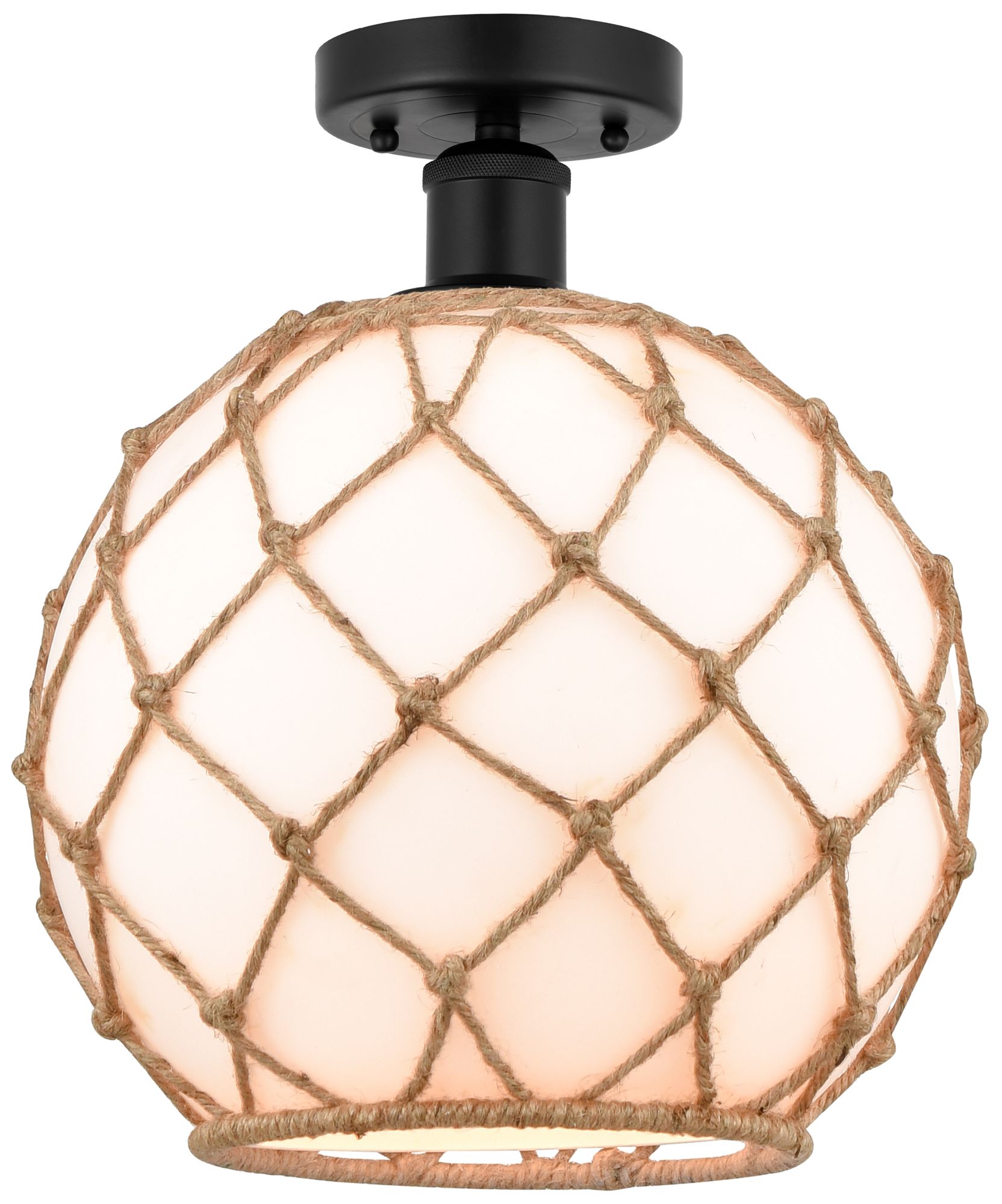 Edison Farmhouse 10" Matte Black Semi Flush w/ White & Brown Rope