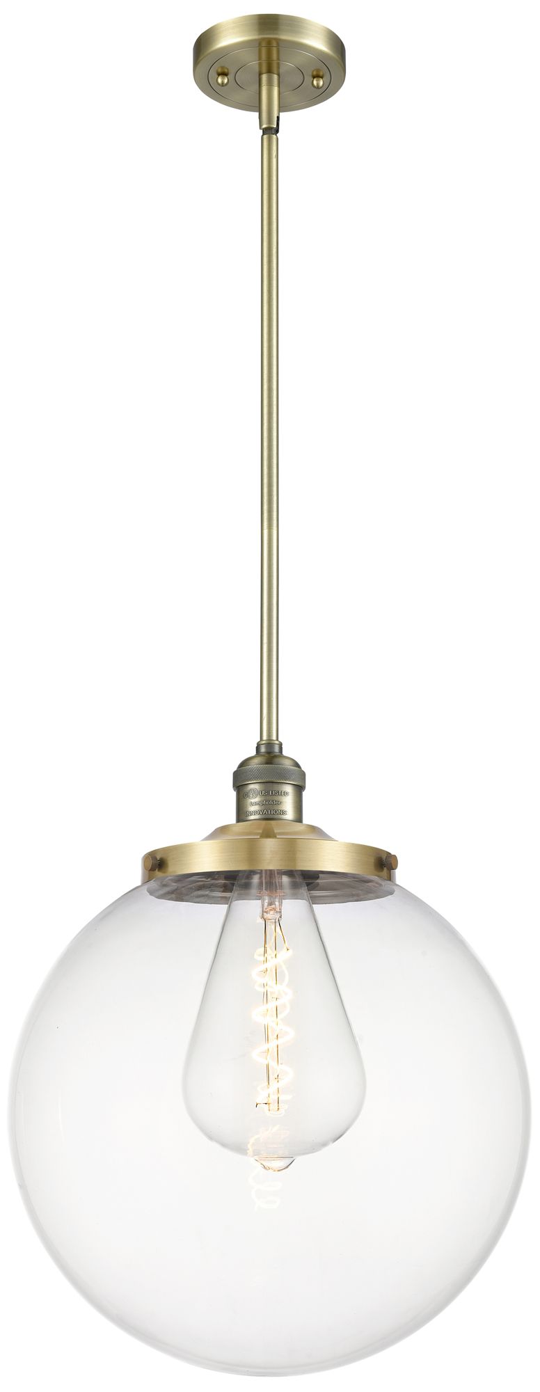 Beacon 14" Wide Antique Brass Pendant With Clear Shade