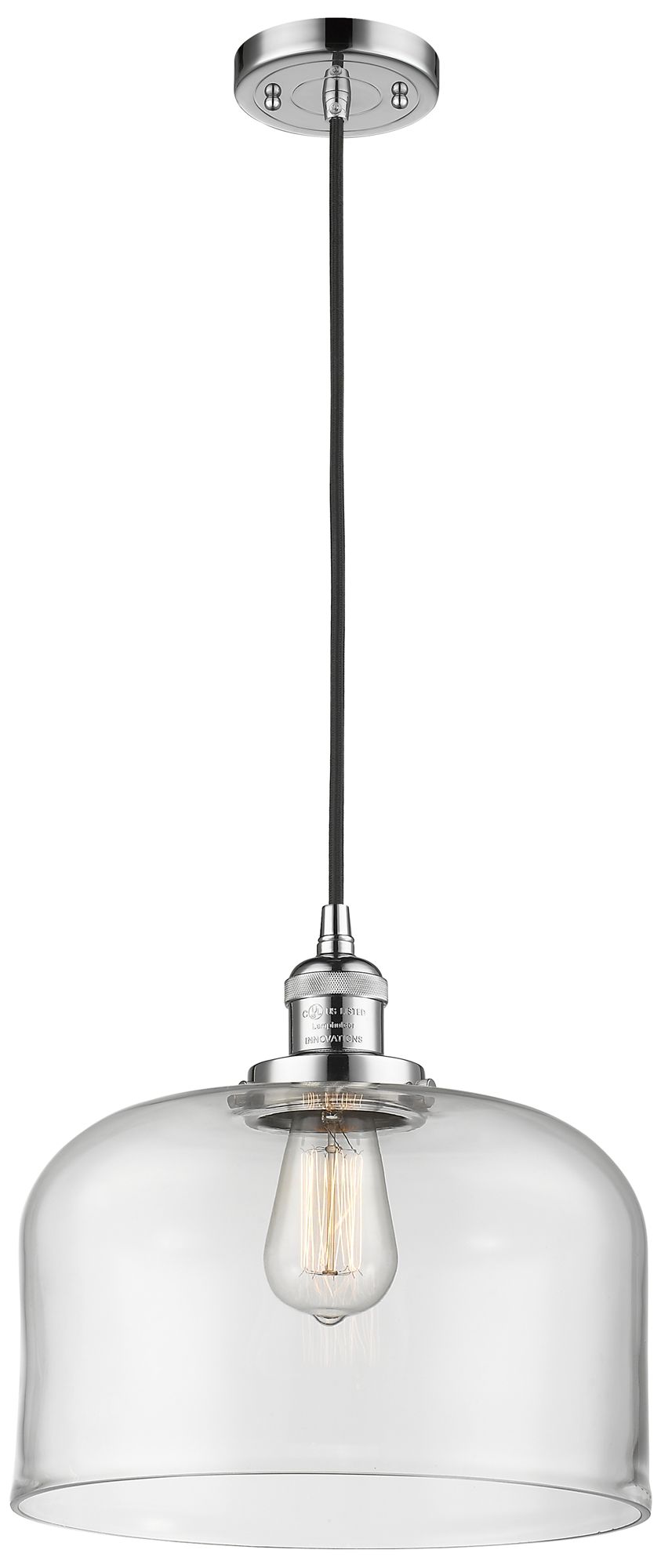 Franklin Restoration Bell 12" Chrome Corded Mini Pendant w/ Clear Shad