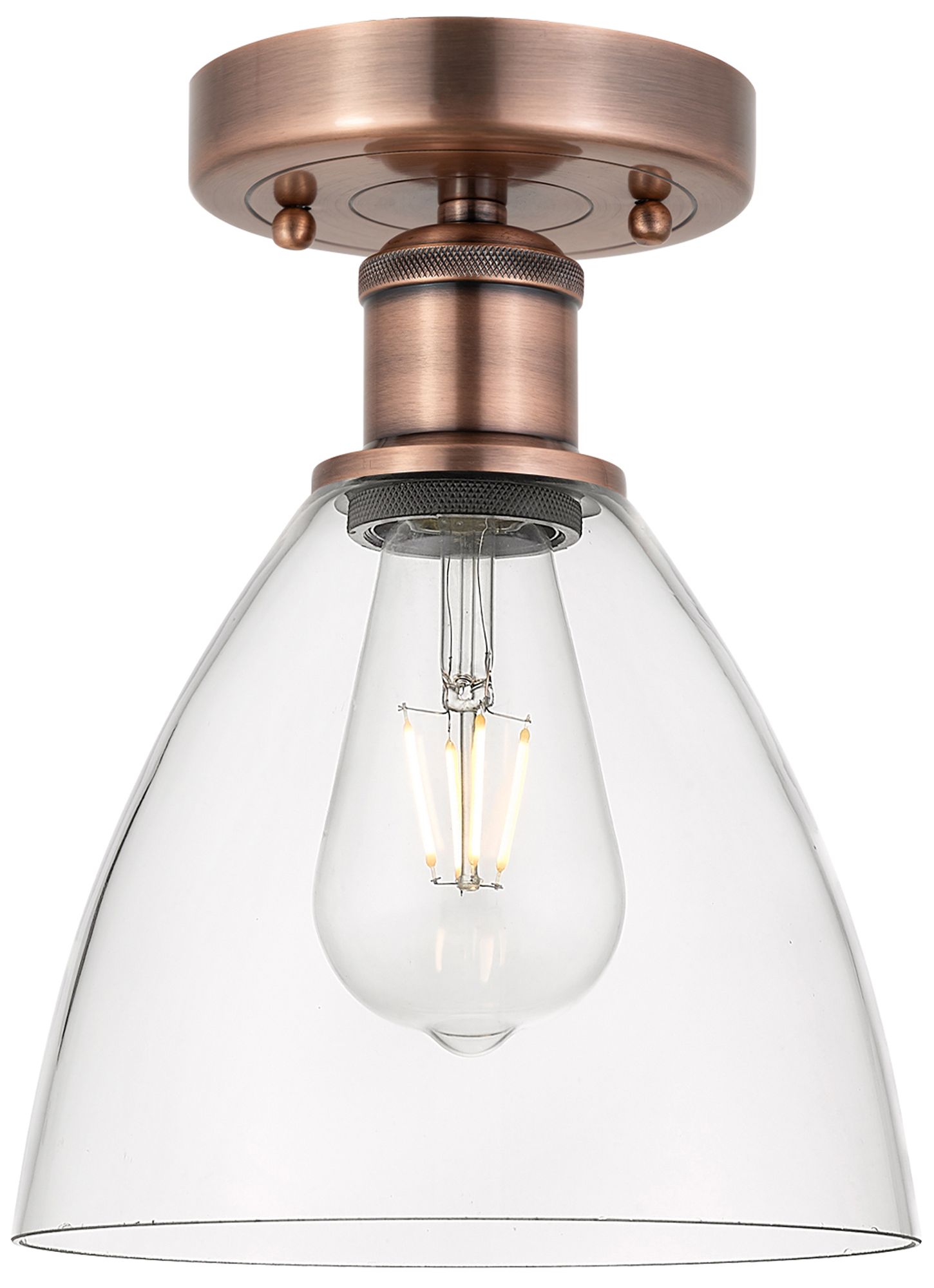 Bristol Glass 7.5"W Antique Copper Semi.Flush Mount With Clear Glass S