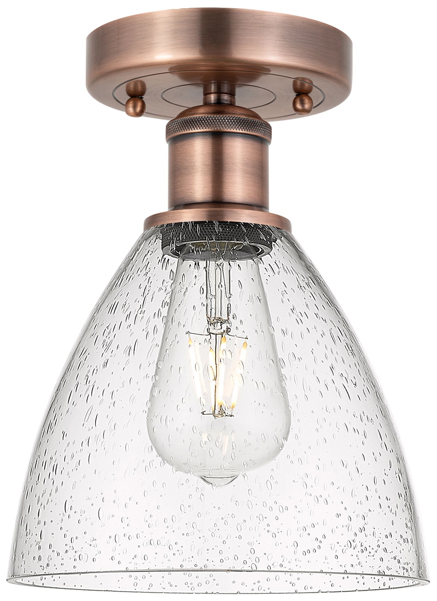 Bristol Glass 7.5"W Antique Copper Semi.Flush Mount With Seedy Glass S