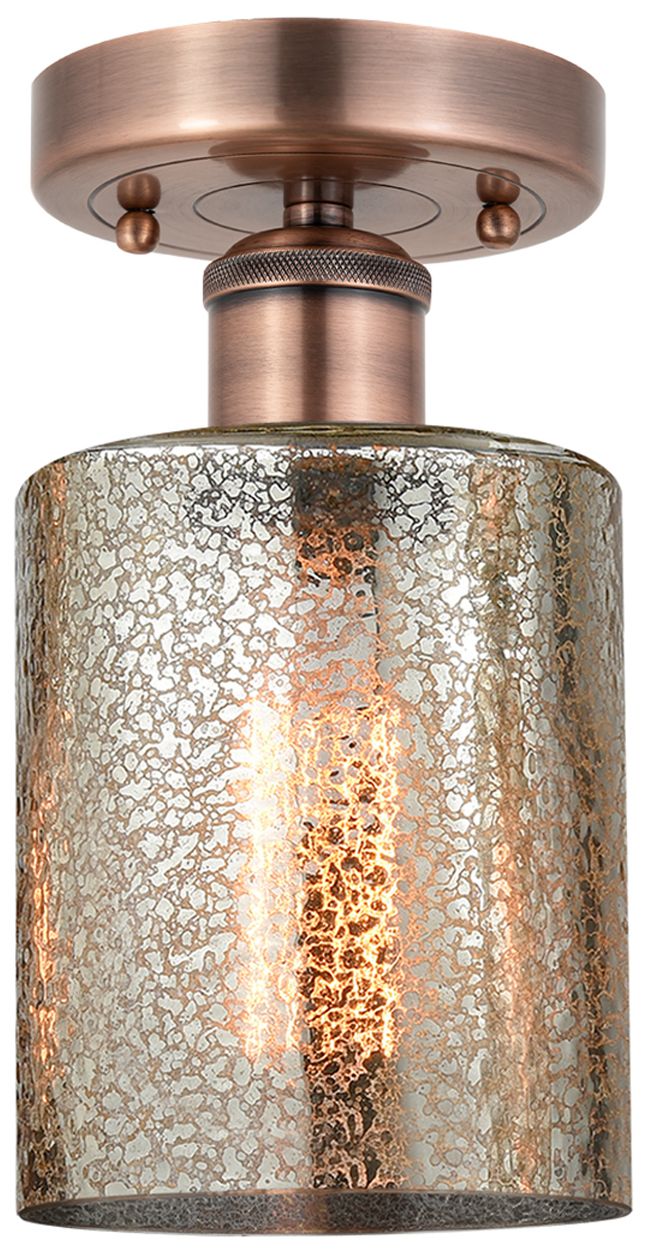 Cobbleskill 5"W Antique Copper Semi.Flush Mount With Mercury Glass Sha