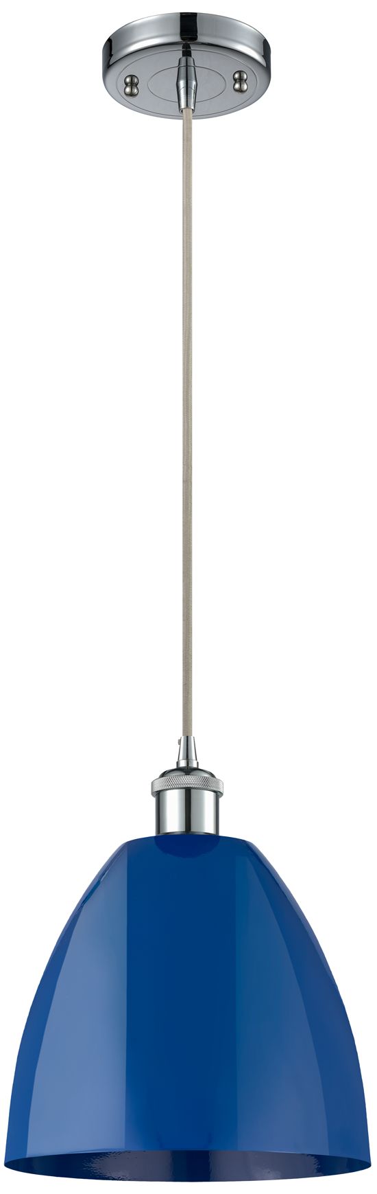 Ballston Plymouth Dome 9"W Chrome Corded Mini Pendant w/ Blue Shade