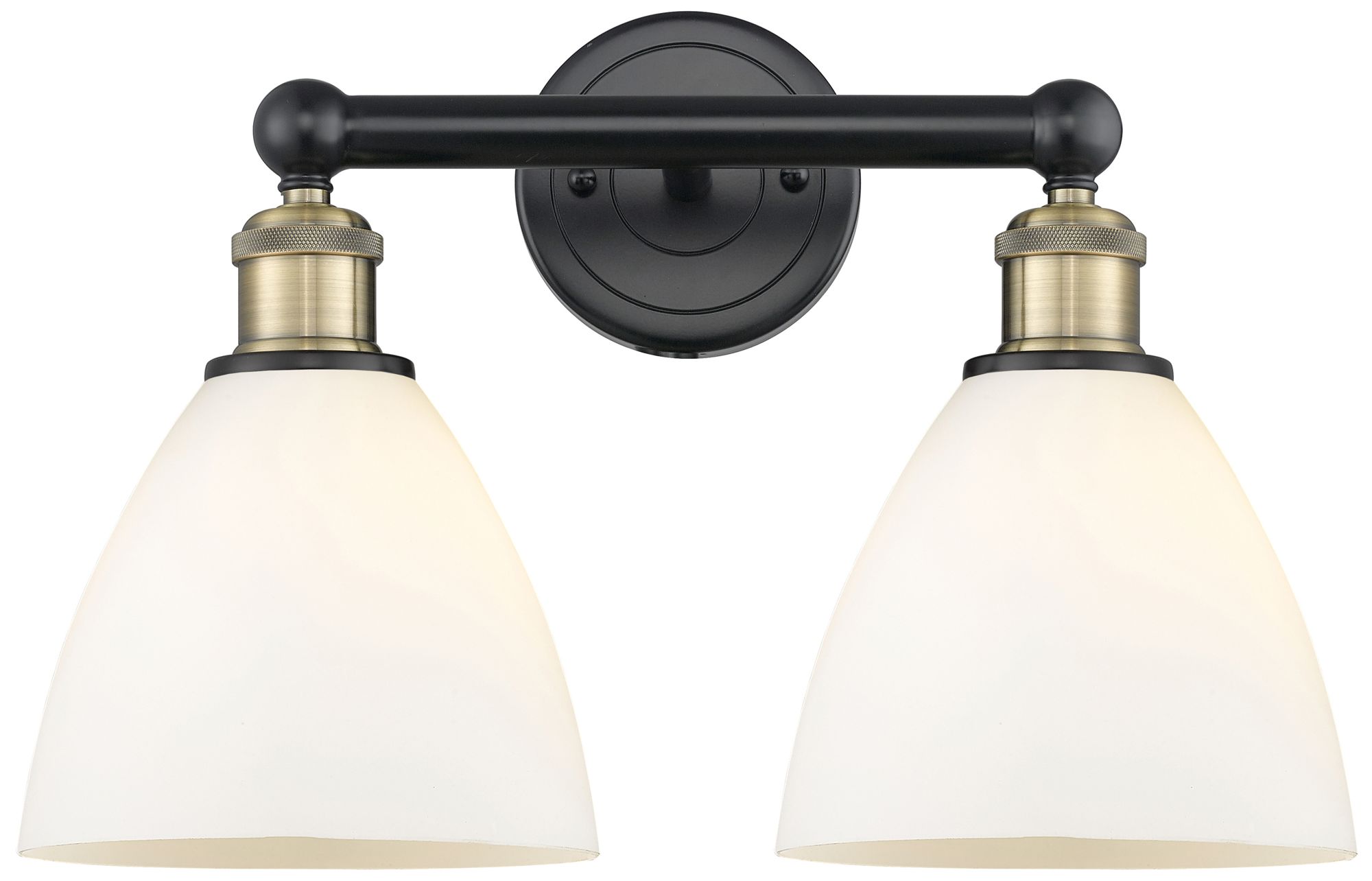 Bristol Glass 16.5"W 2 Light Black Brass Bath Light With White Shade