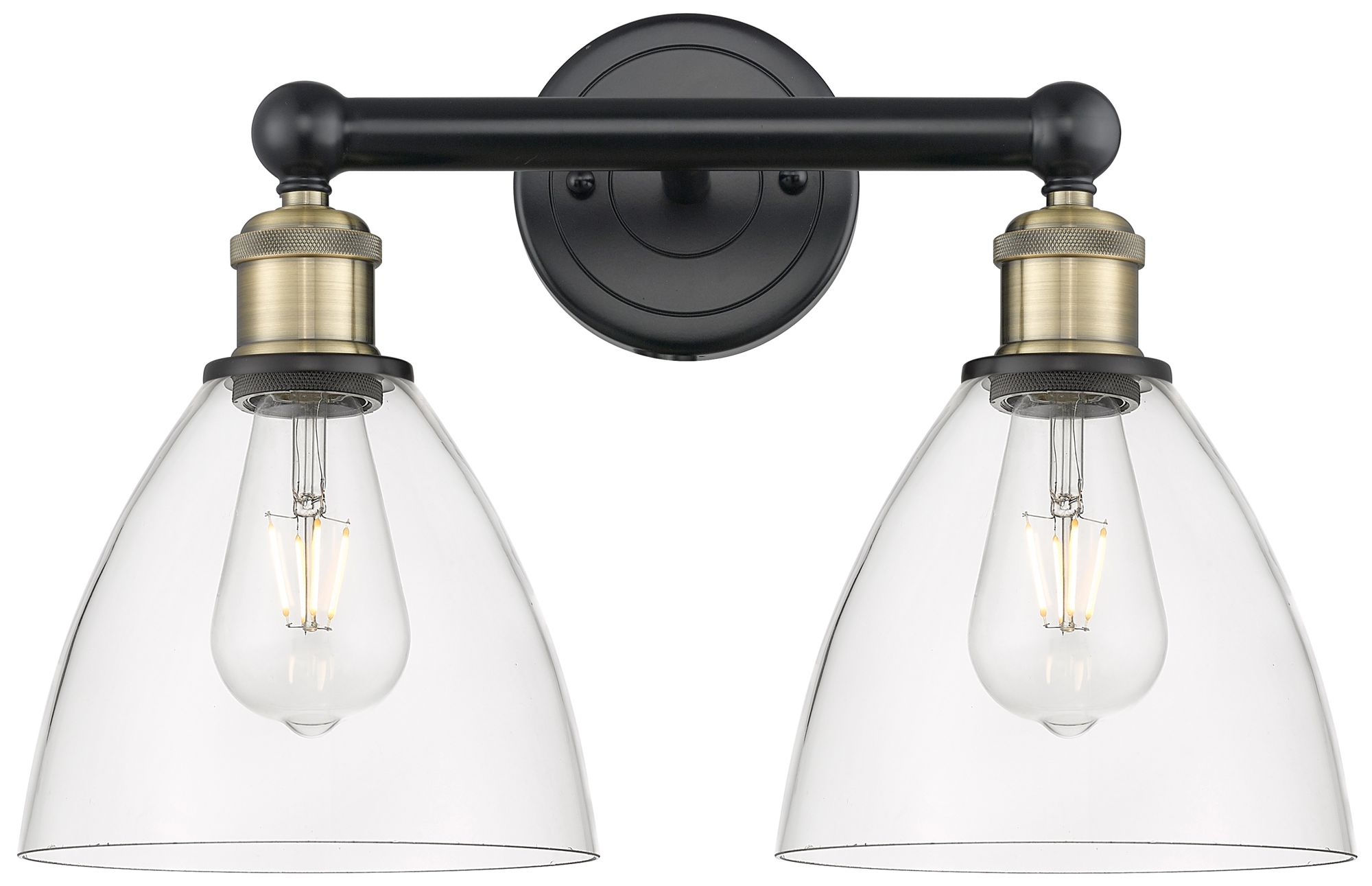 Bristol Glass 16.5"W 2 Light Black Brass Bath Light With Clear Shade