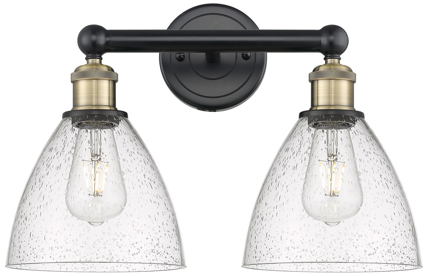Bristol Glass 16.5"W 2 Light Black Brass Bath Light With Seedy Shade