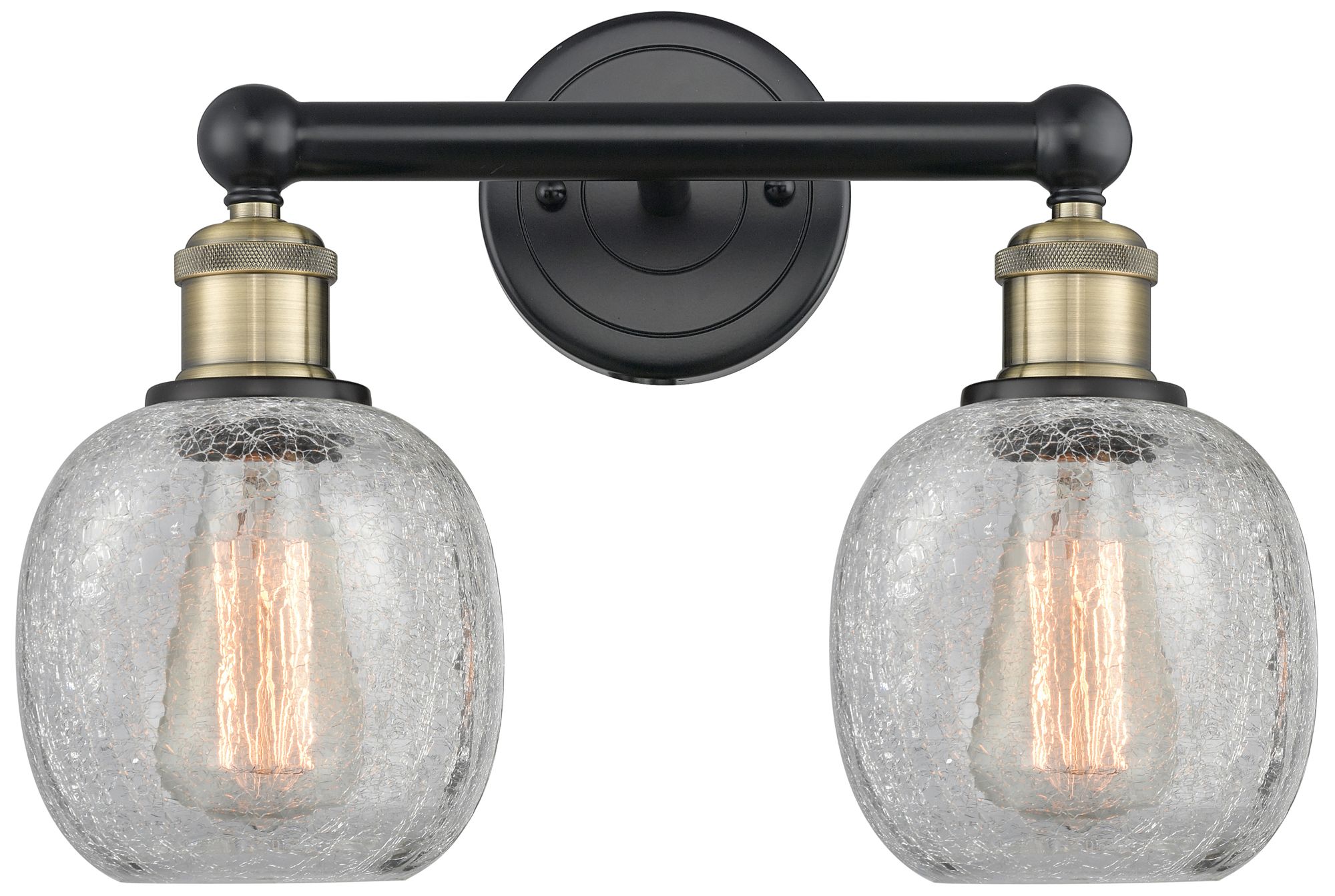 Belfast 15"W 2 Light Black Antique Brass Bath Light With Crackle Shade