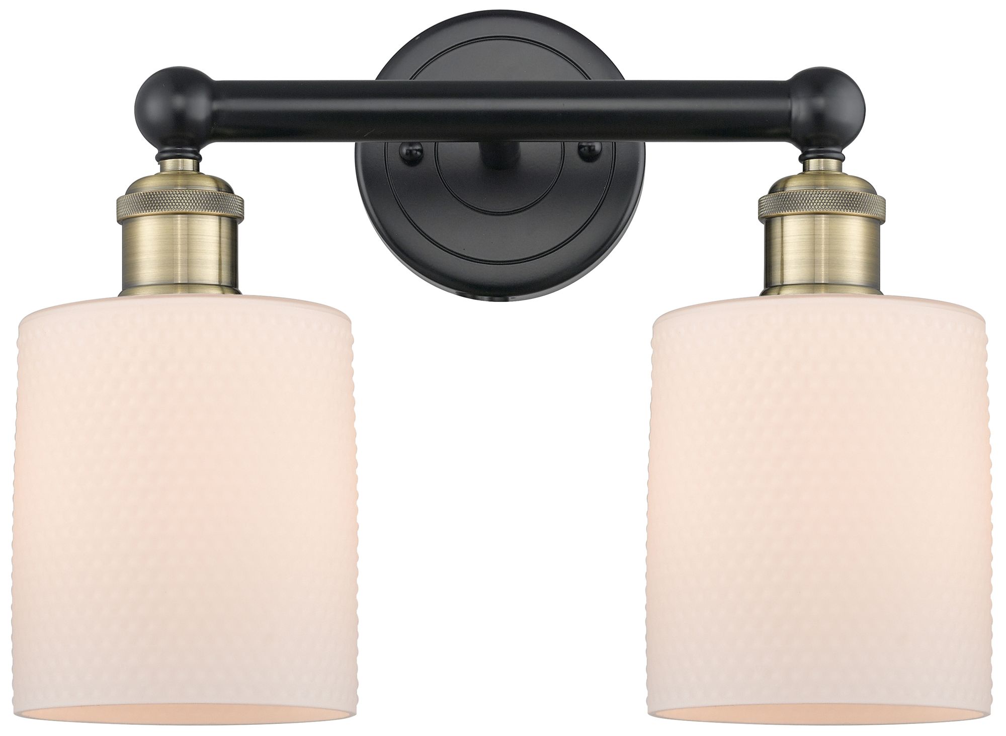 Edison Cobbleskill 14"W 2 Light Black Brass Bath Light With White Shad