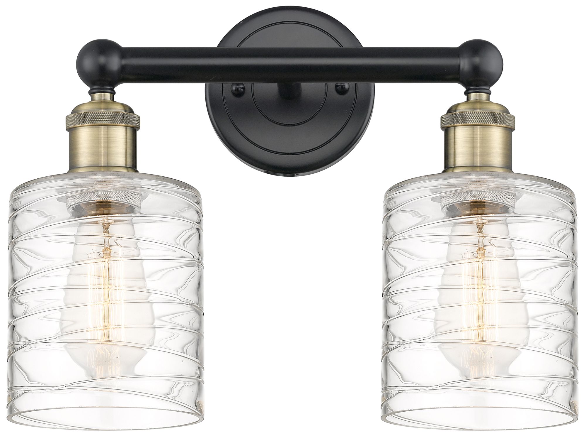 Edison Cobbleskill 14"W 2 Light Black Brass Bath Light w/ Deco Swirl S