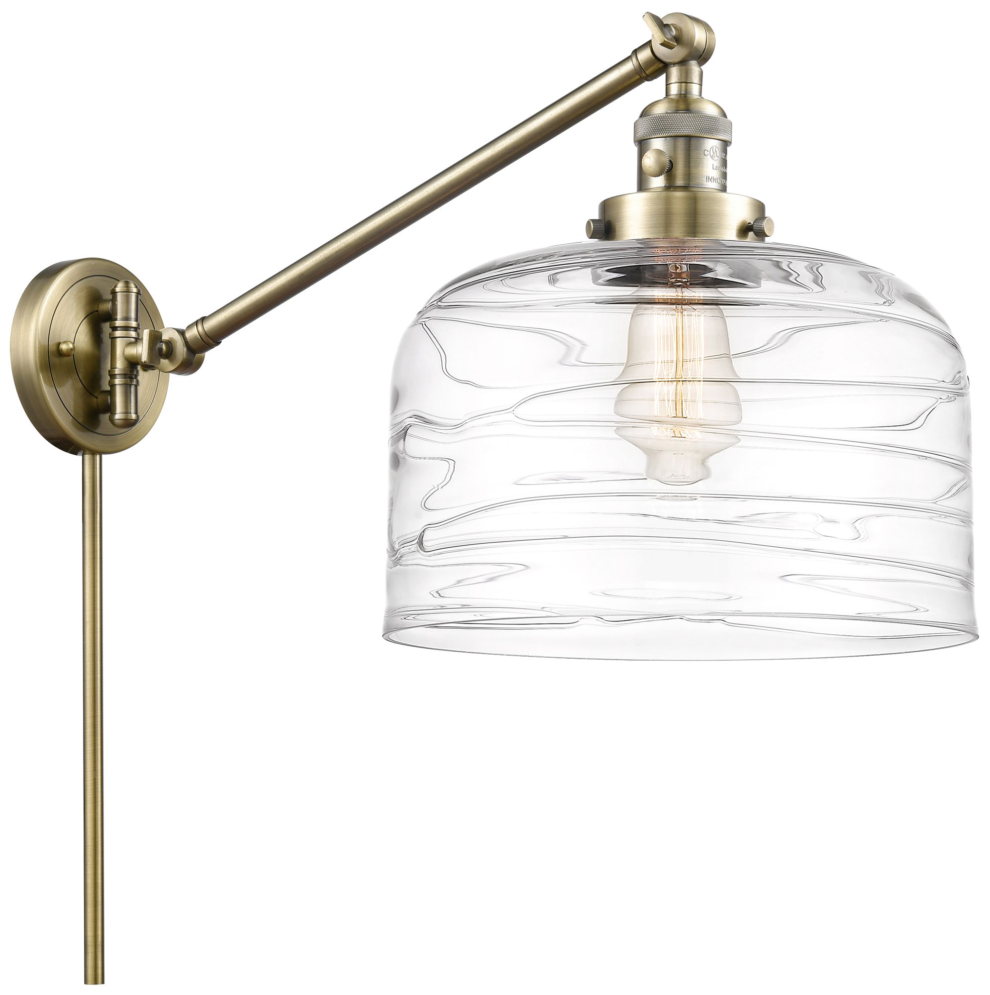 Bell 12" Antique Brass LED Swing Arm With Clear Deco Swirl Shade