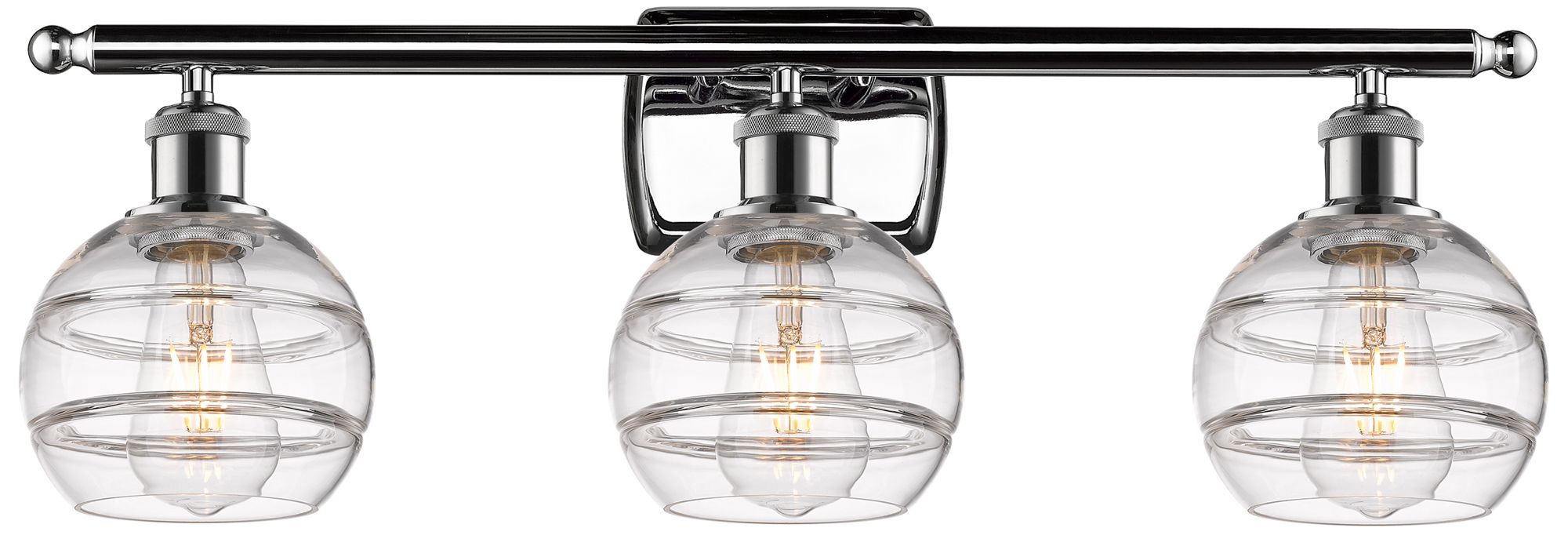 Ballston Rochester 25.88"W 3 Light Chrome Bath Light w/ 6" Clear