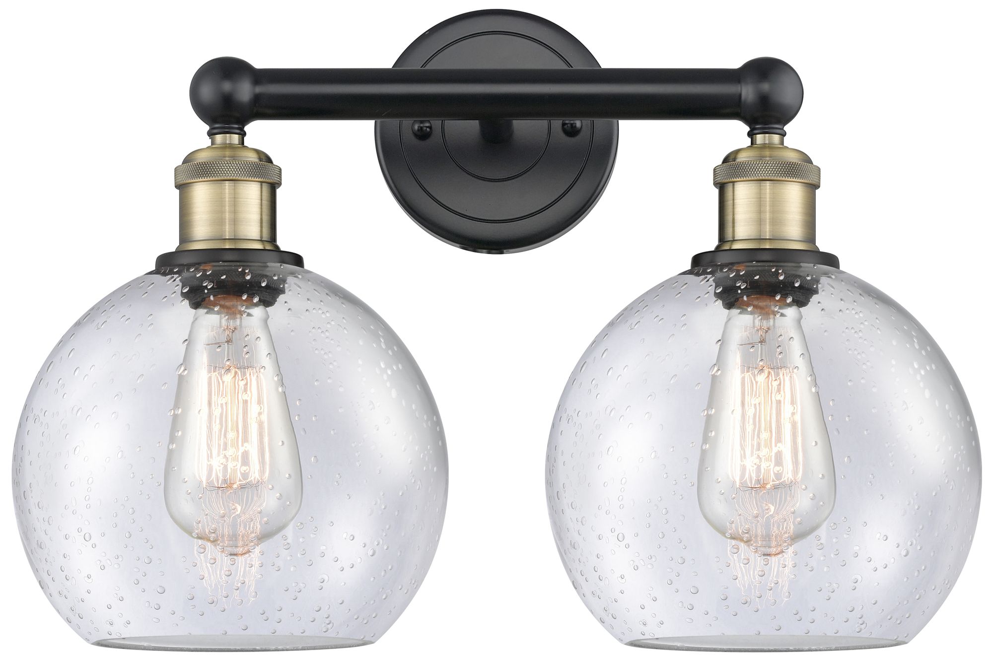 Athens 17"W 2 Light Black Antique Brass Bath Vanity Light With Seedy S