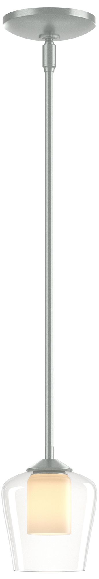 Simple 5"W Vintage Platinum Mini-Pendant With Opal and Clear Glass Sha