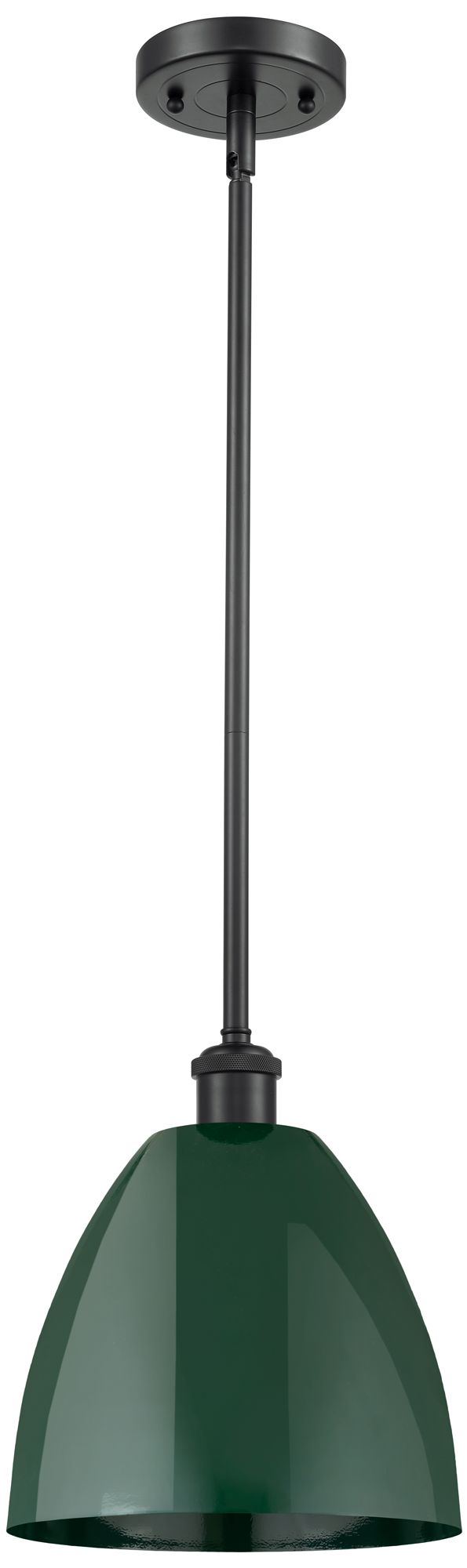 Plymouth Dome 9" Wide Matte Black Stem Hung Pendant w/ Green Shade