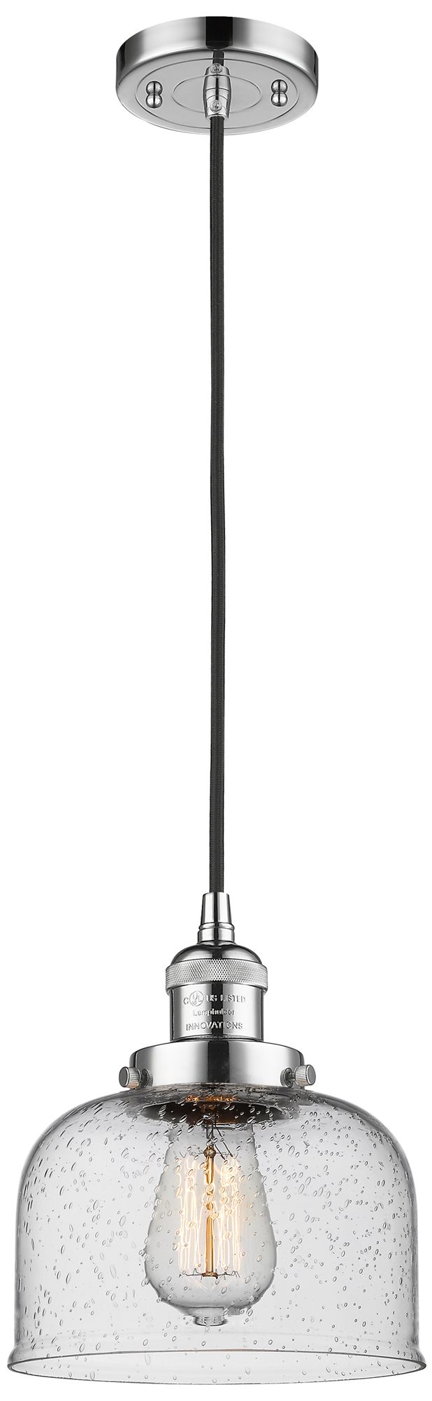 Franklin Restoration Bell 8" Chrome Corded Mini Pendant w/ Seedy Shade