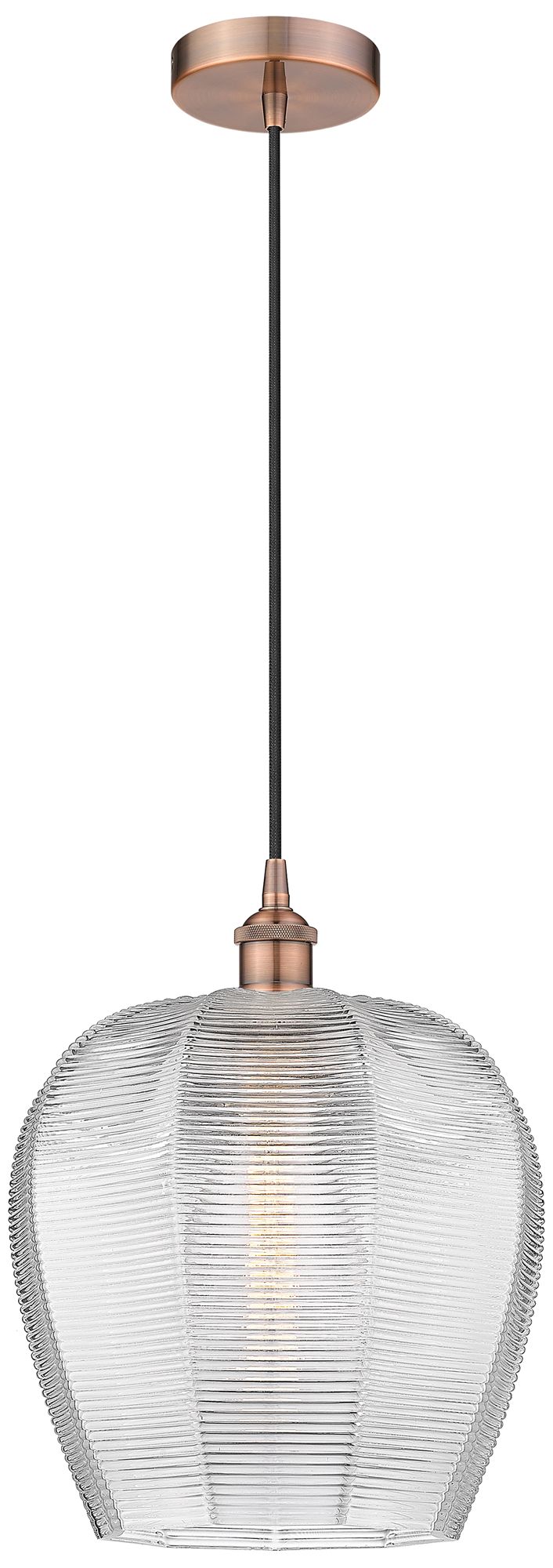 Edison Norfolk 12" Antique Copper Cord Hung Mini Pendant w/ Clear Shad