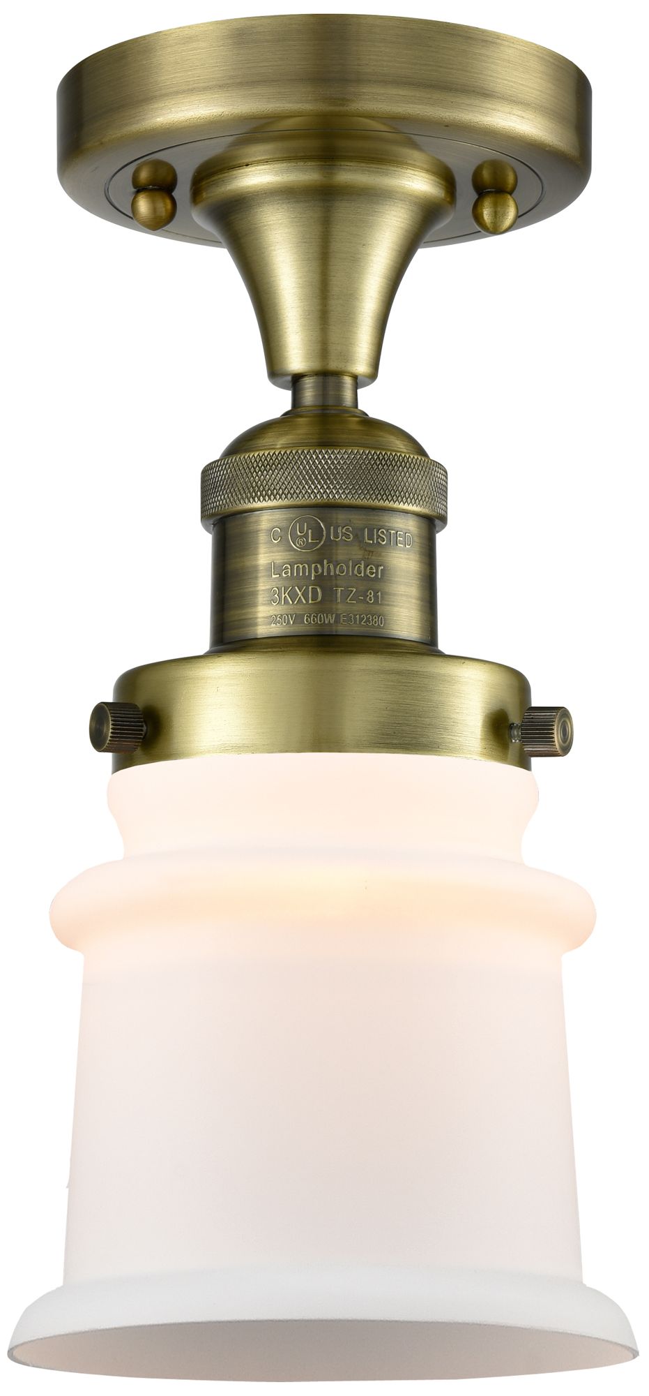 Canton 6" Wide Antique Brass Semi Flush Mount w/ Matte White Shade