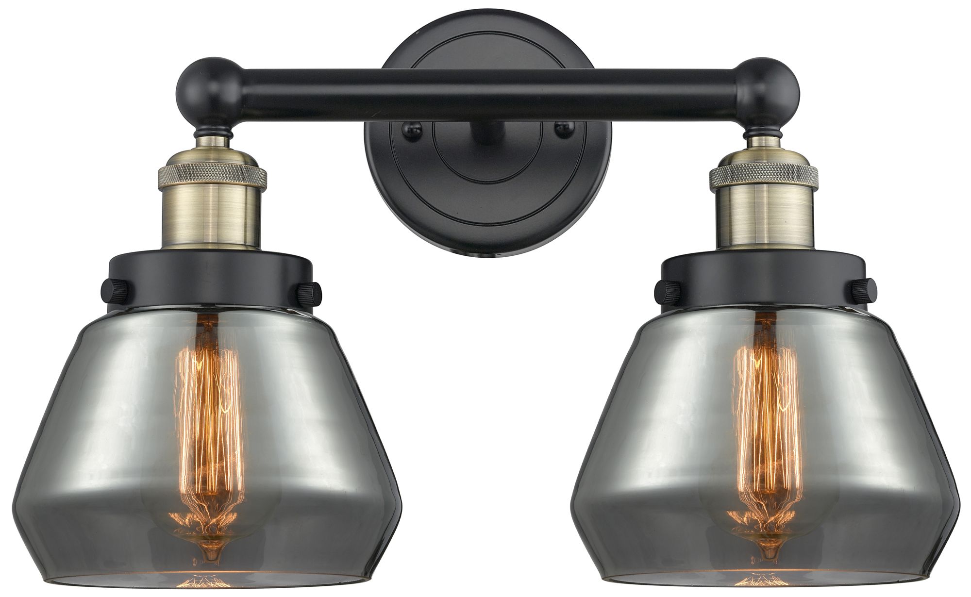 Edison Fulton 15.5"W 2 Light Black Brass Bath Light With Plated Smoke