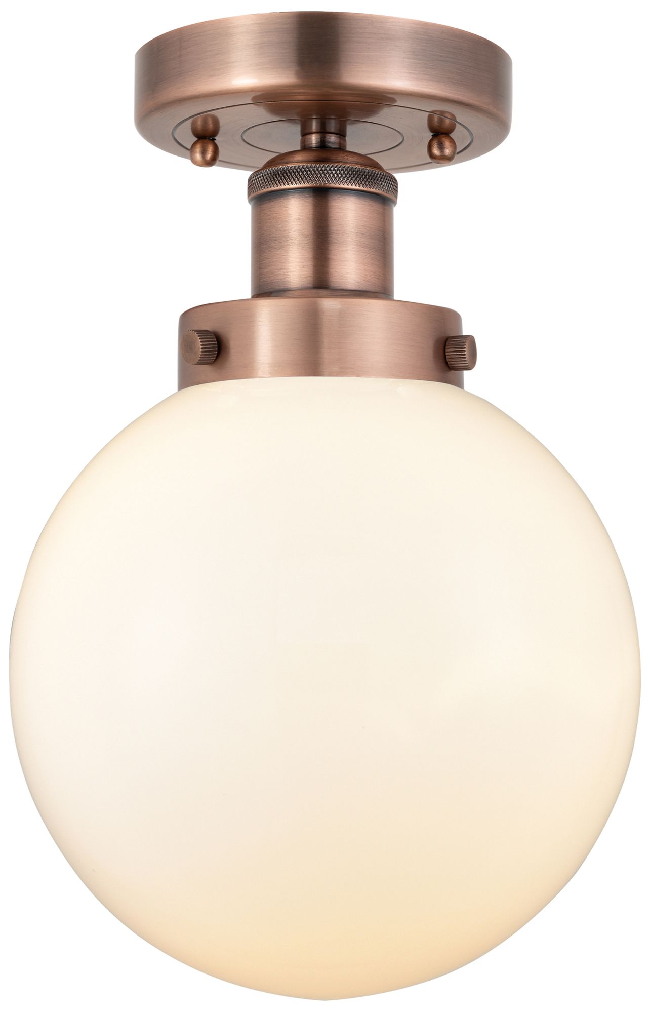 Beacon 8" Wide Antique Copper Semi.Flush Mount With Matte White Glass
