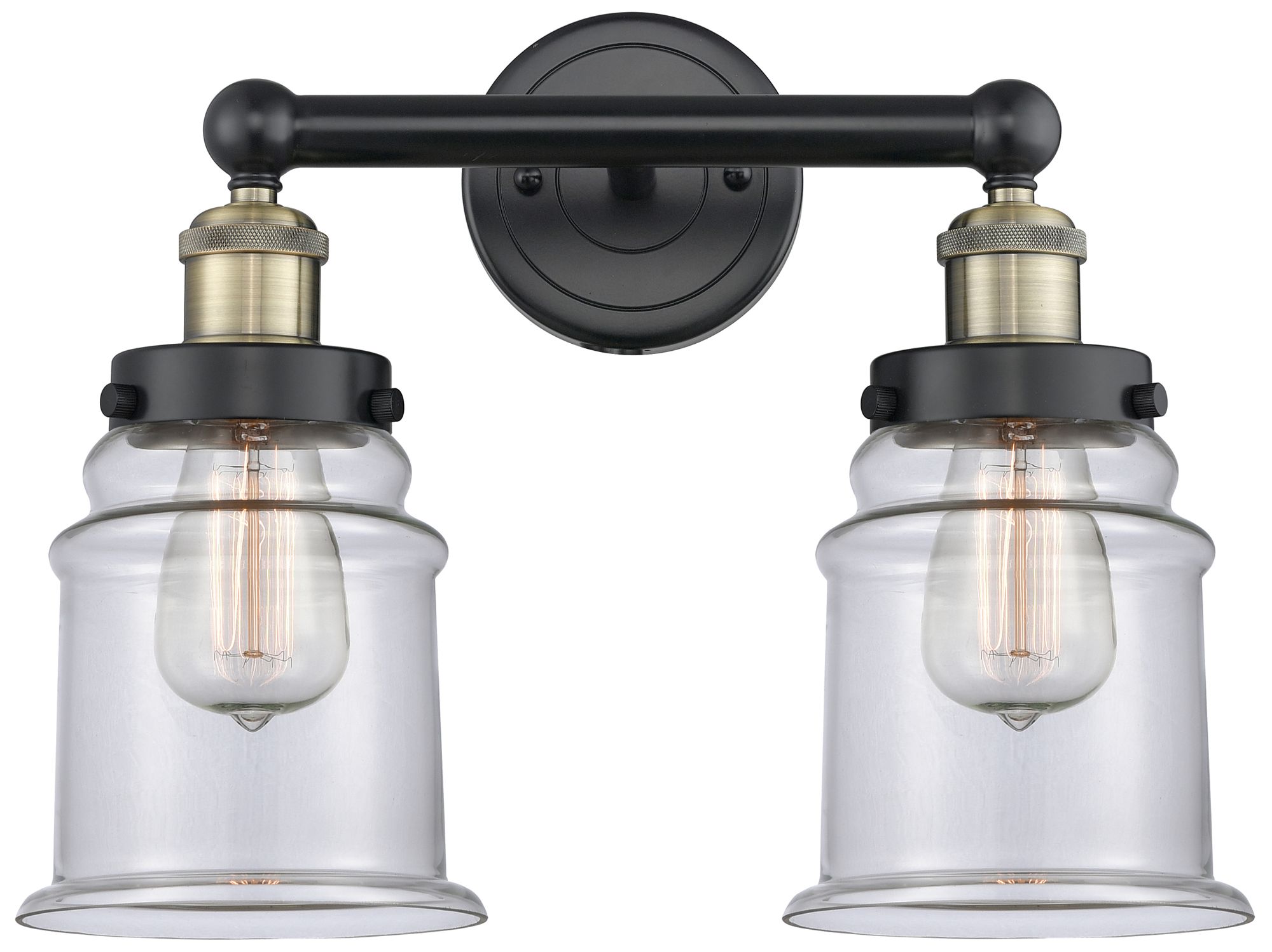 Canton 15"W 2 Light Black Antique Brass Bath Vanity Light With Clear S