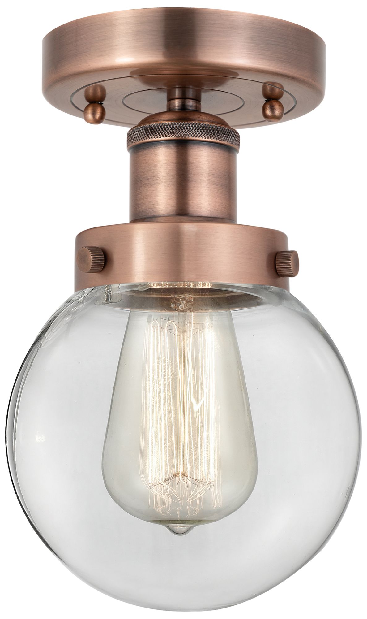 Beacon 6" Wide Antique Copper Semi.Flush Mount With Clear Glass Shade