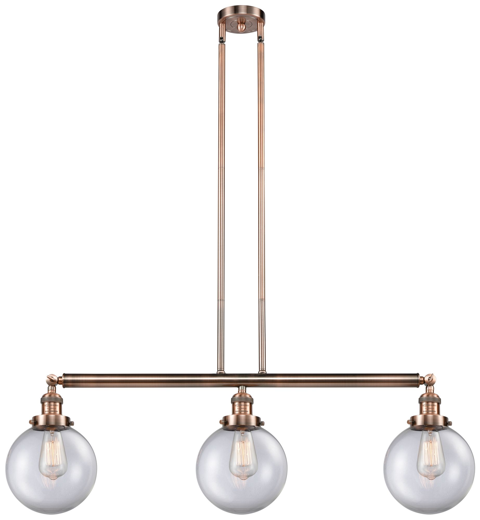 Beacon 3 Light 41" Island Light - Antique Copper - Clear Shade