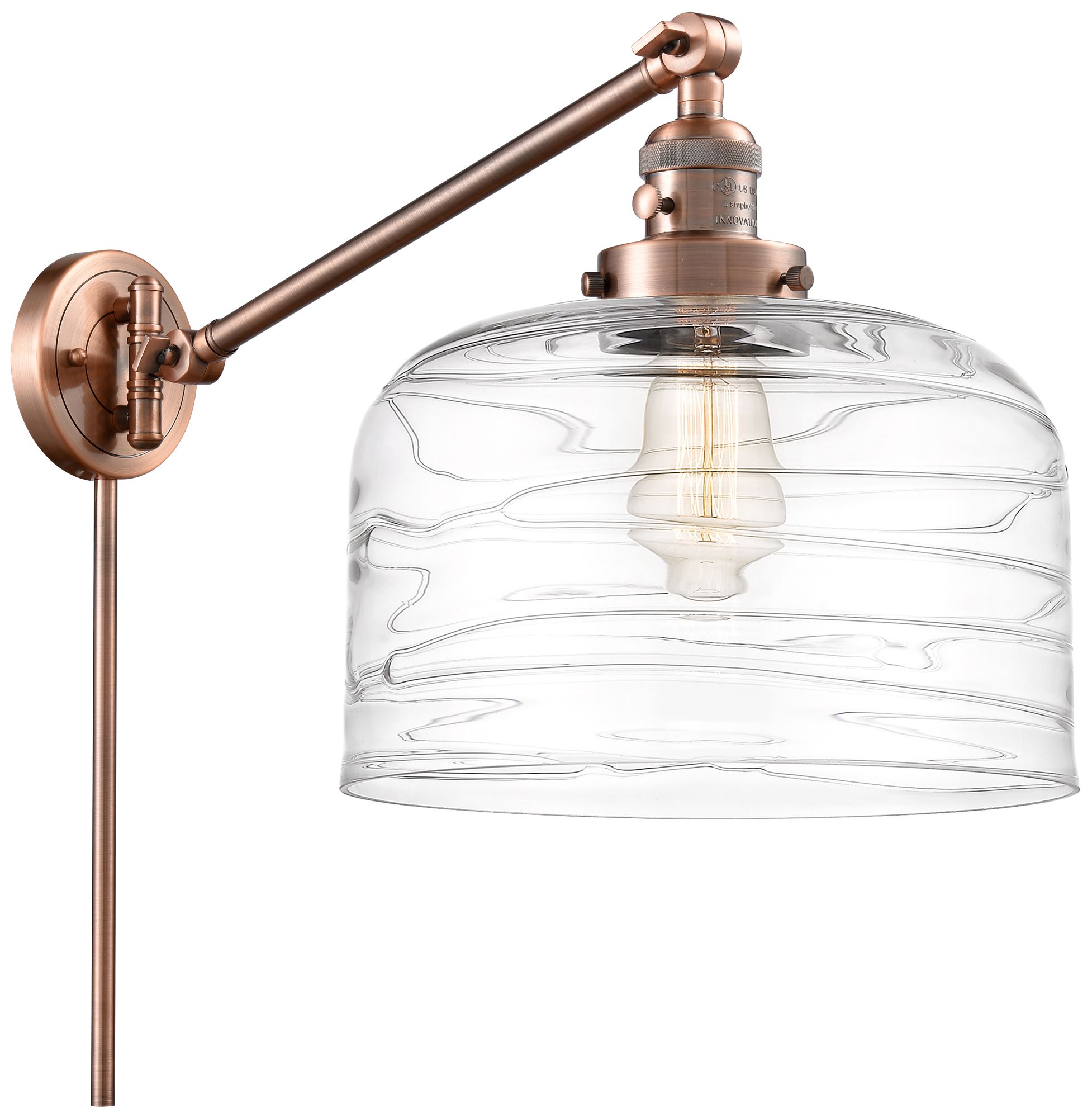 Bell 12" Antique Copper LED Swing Arm With Clear Deco Swirl Shade