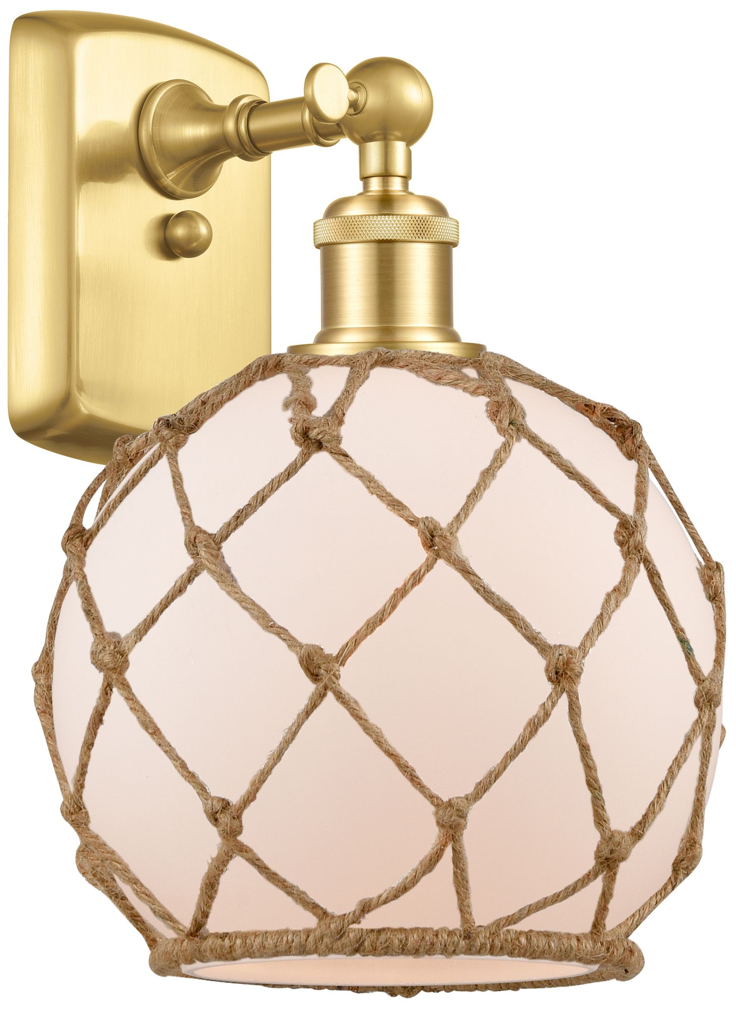 Farmhouse Rope 13" High Gold Sconce w/ White Glass with Brown Rope Sha