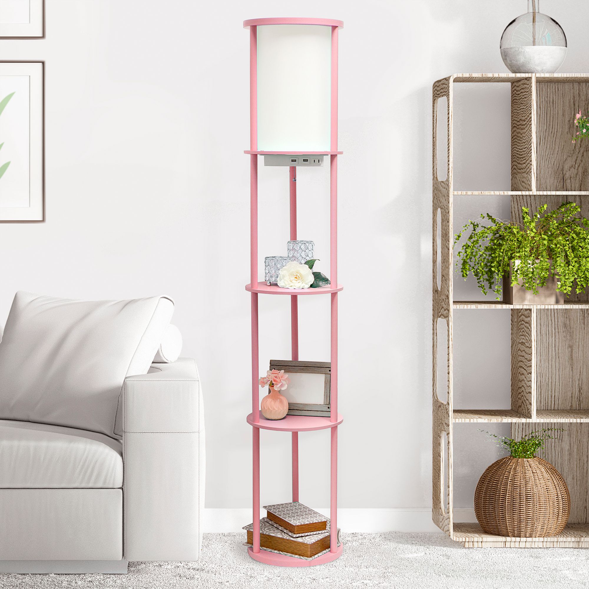 Kiva Pink 62 1/2" 3-Shelf Etagere Floor Lamp with USB Ports and Outlet
