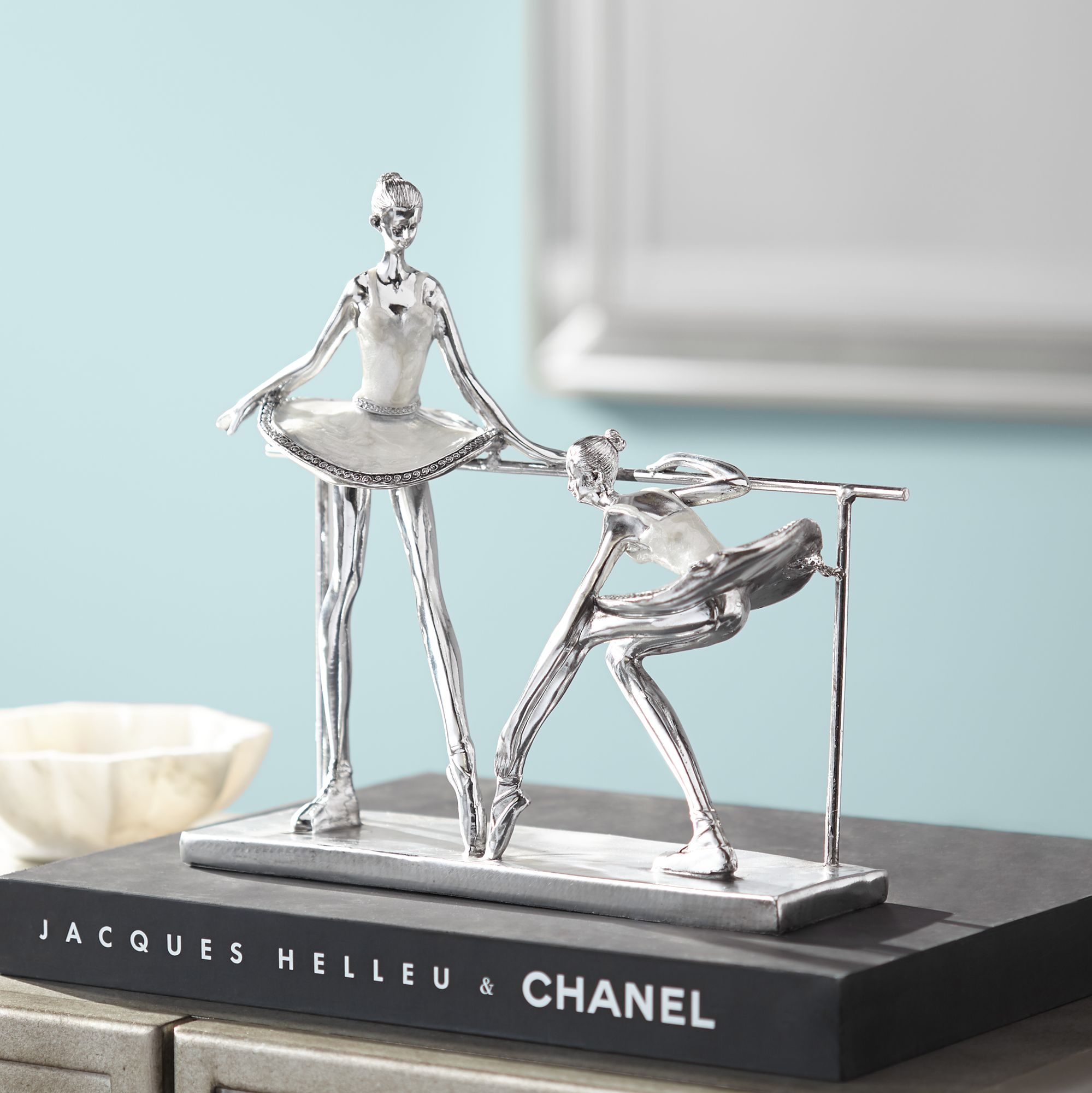 Ballerina Practice 11 1/2" High Silver Sculpture