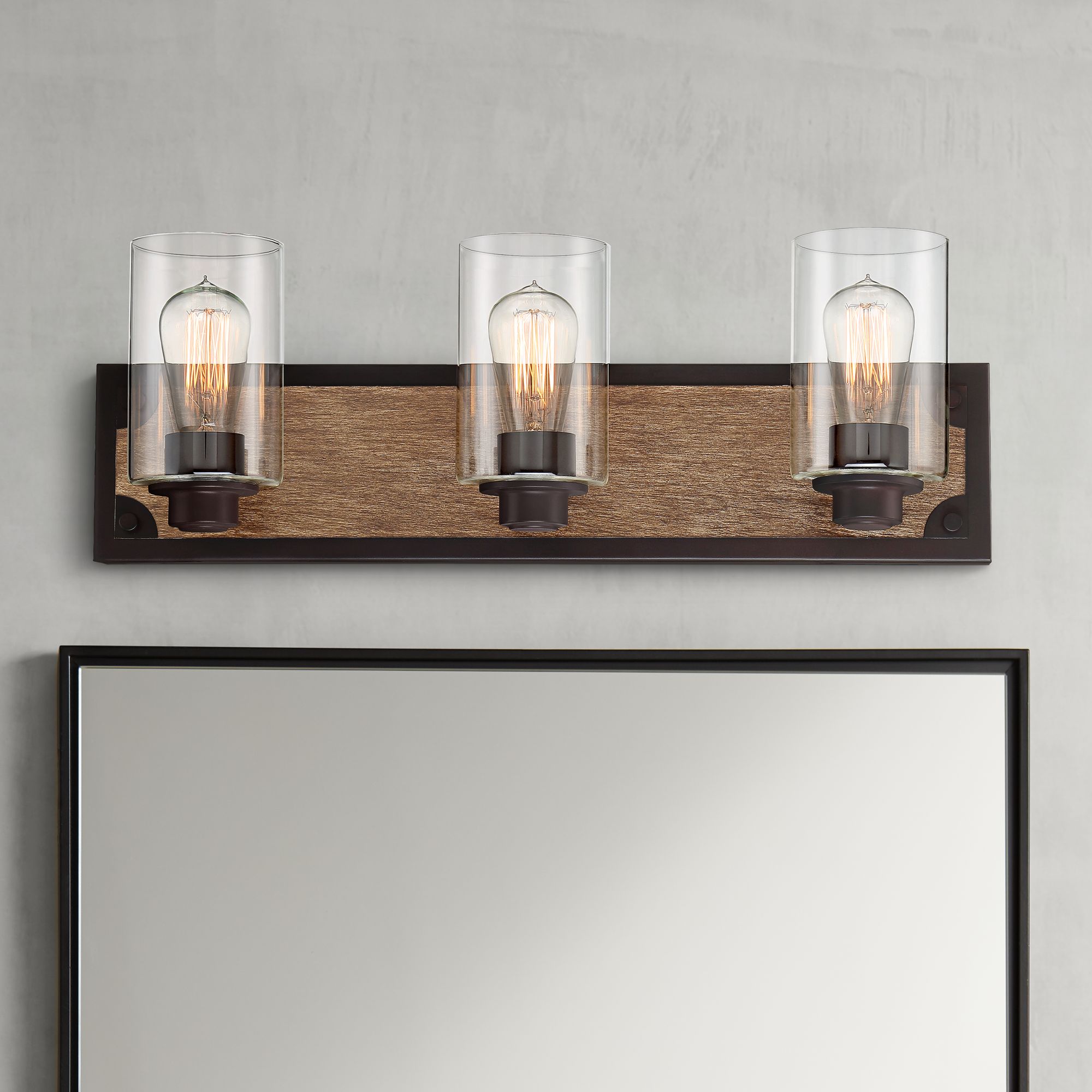 Buford 23" Wide Wood-Accented Black Three-Light Bath Light