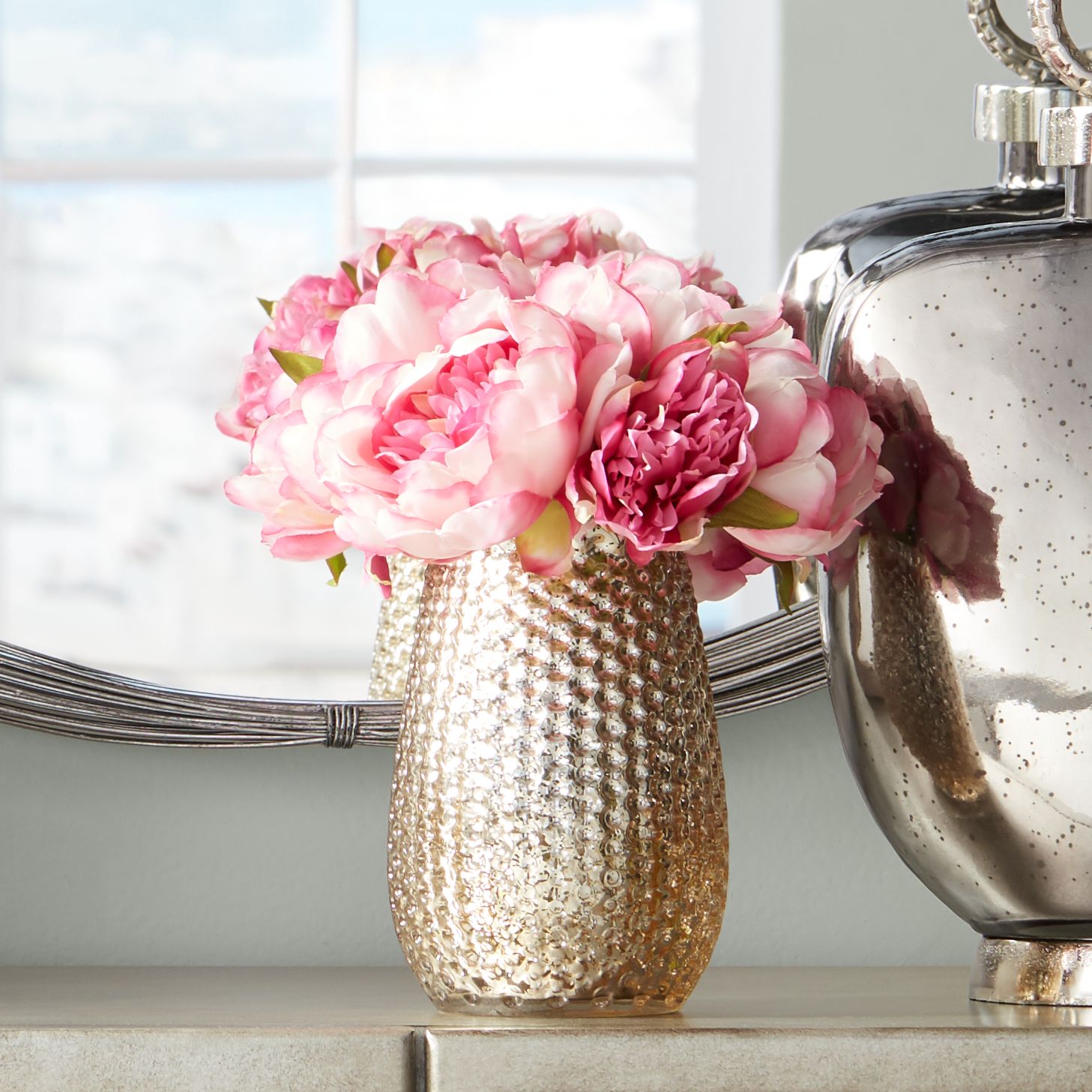 Pink Peony 8" High Faux Flowers in Mercury Glass Vase
