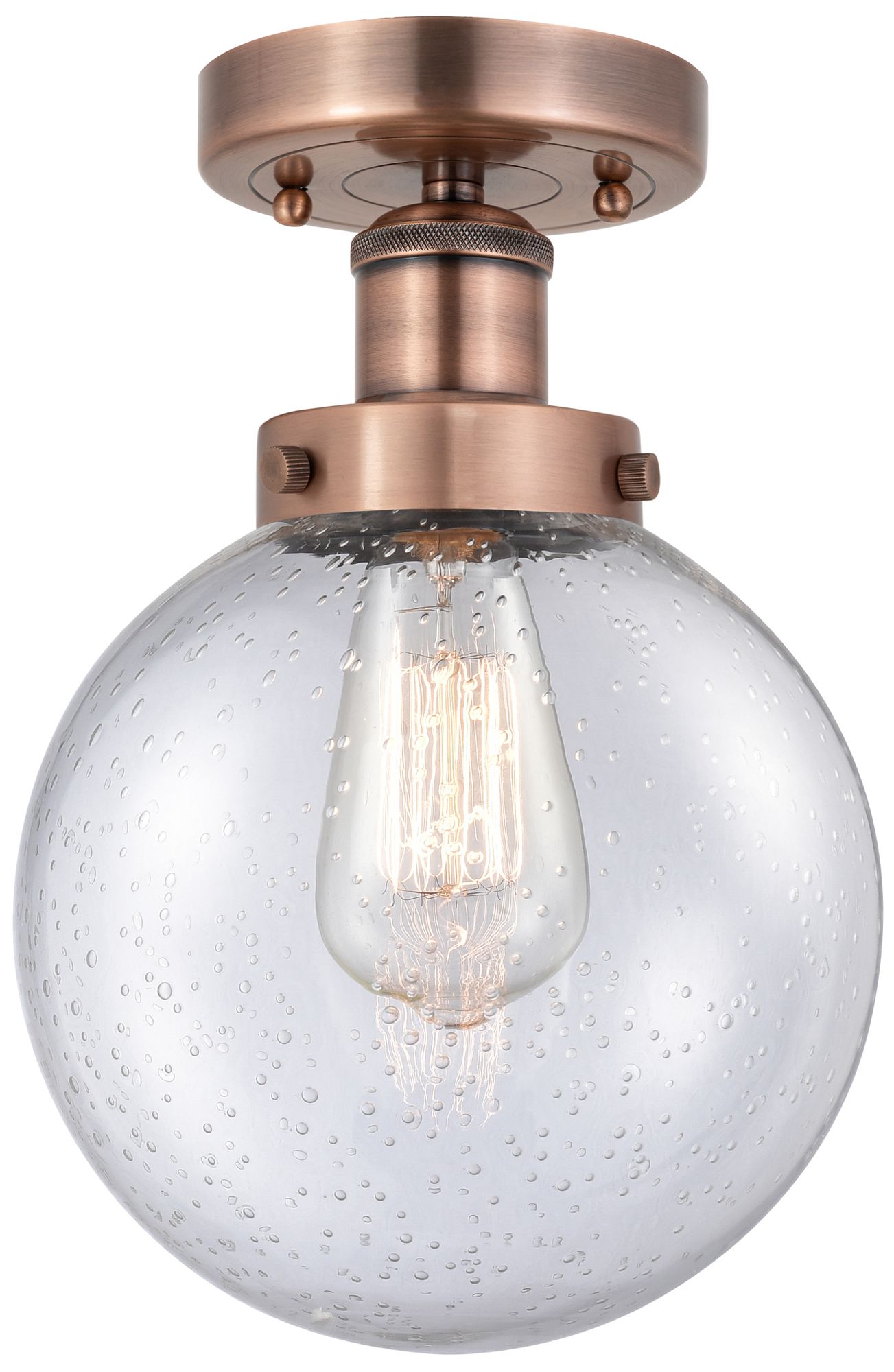 Beacon 8" Wide Antique Copper Semi.Flush Mount With Seedy Glass Shade