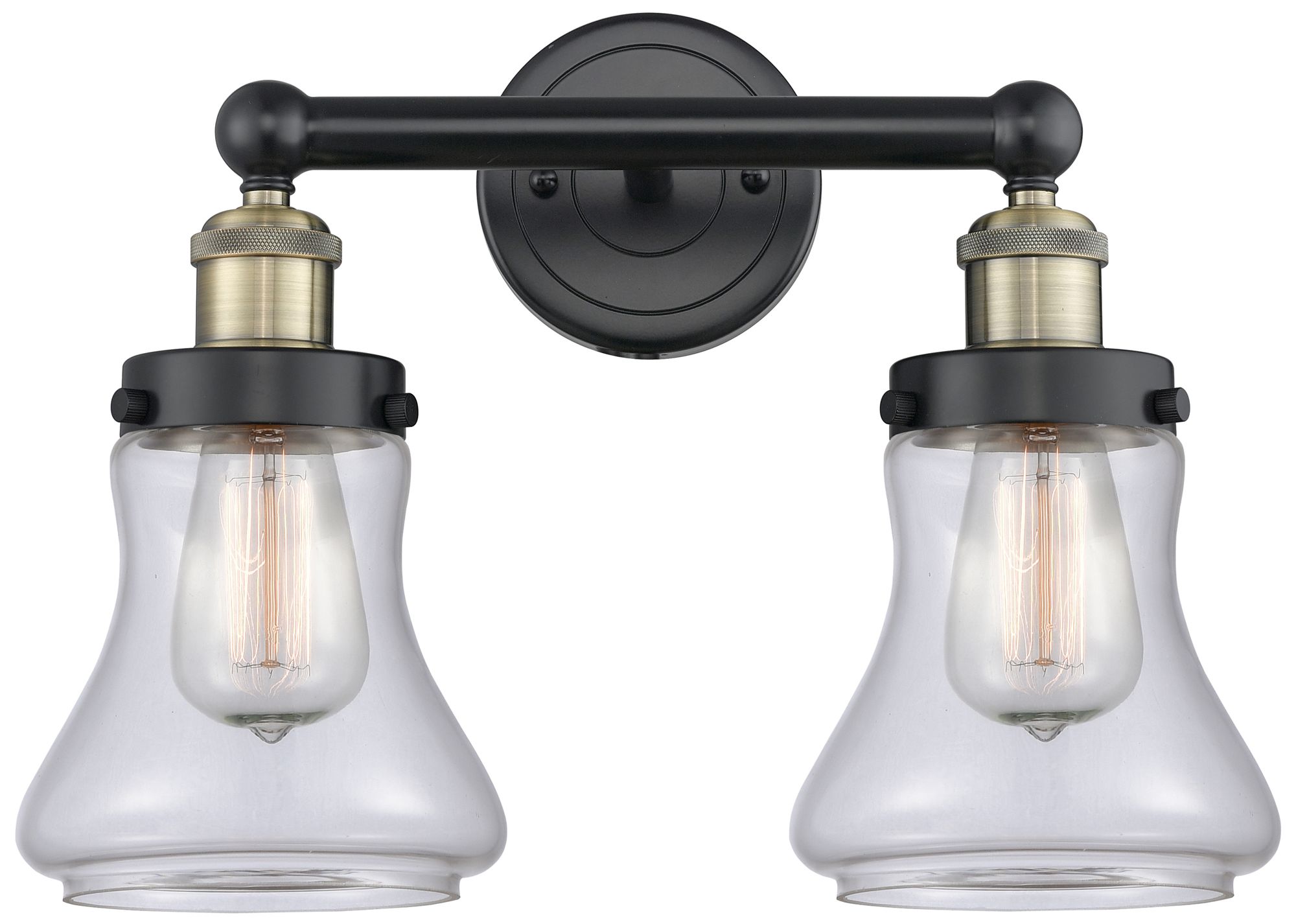 Edison Bellmont 15.5"W 2 Light Black Brass Bath Light With Clear Shade