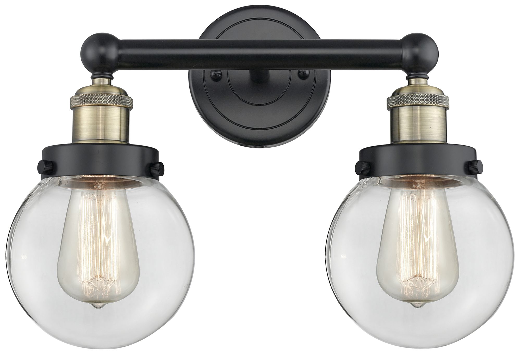 Small Edison Beacon 15.5"W 2 Light Black Brass Bath Light With Clear S