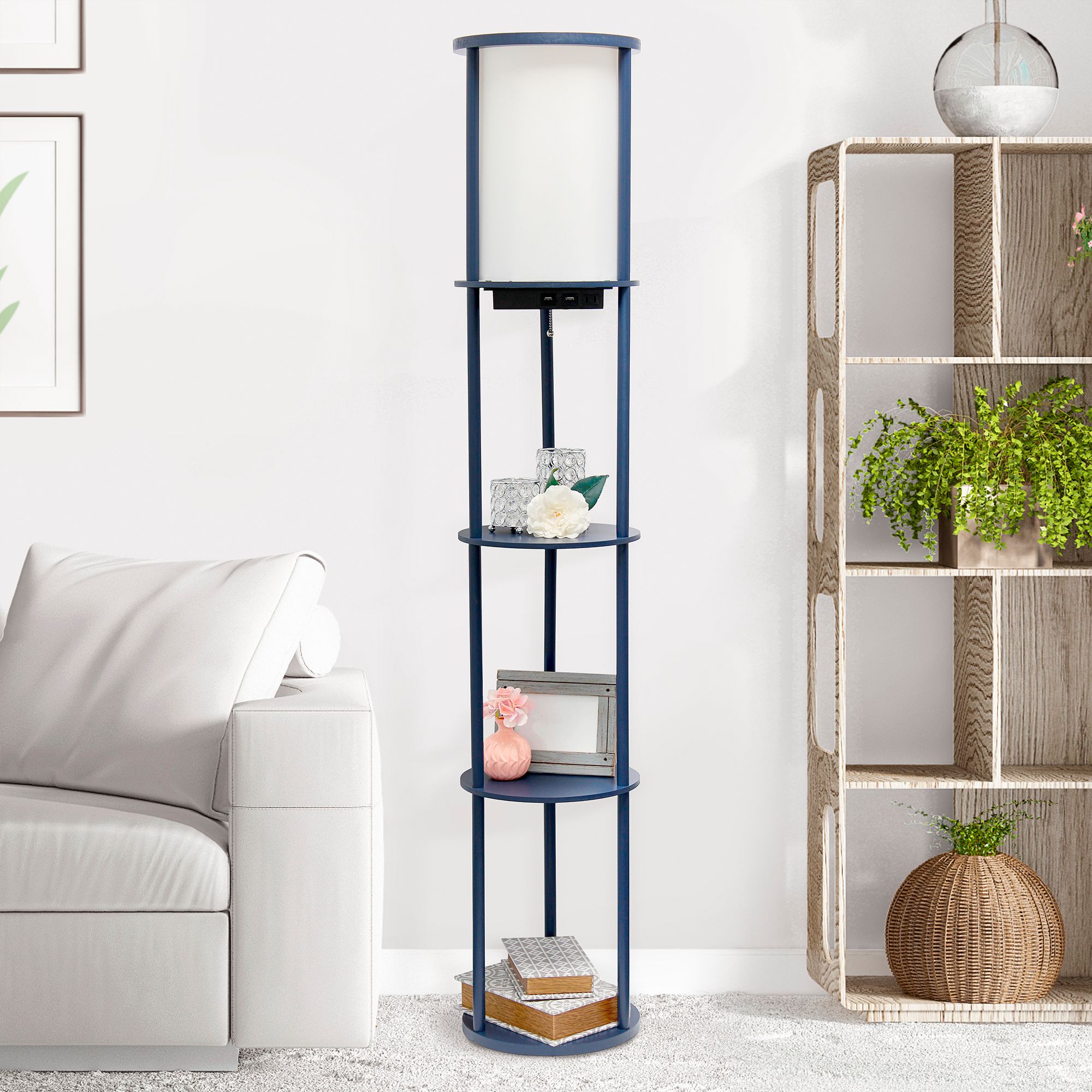 Kiva Navy 62 1/2" 3-Shelf Etagere Floor Lamp with USB Ports and Outlet