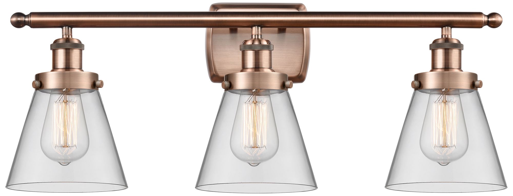 Ballston Urban Cone 6" 3 Light 26" LED Bath Light - Copper - Clea