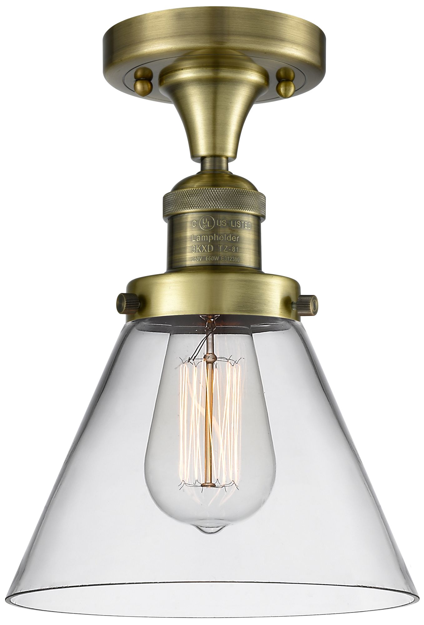 Cone 7.75" Wide Antique Brass Semi Flush Mount w/ Clear Shade