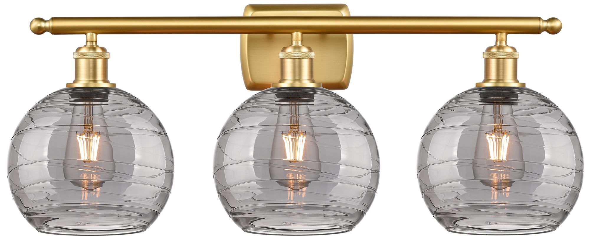 Ballston Athens 28"W 3 Light Satin Gold Bath Light w/ 8" Smoke Sw